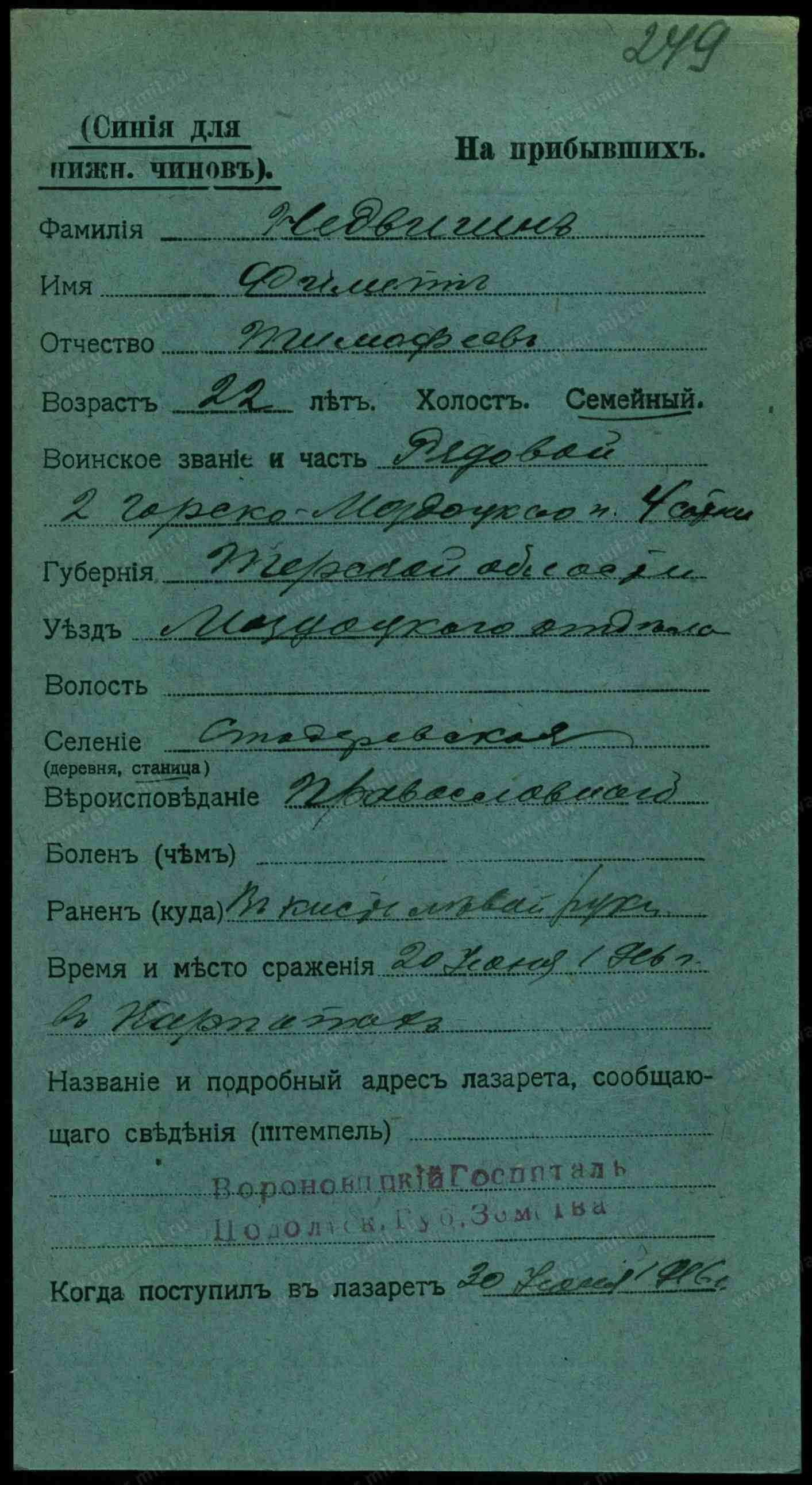 Место события Карпаты Тип документа Карточка на прибывших (нижние чины)