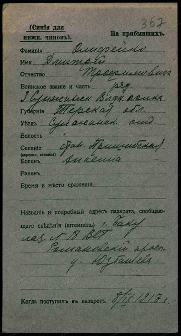 Фонд Картотека бюро учета потерь в Первой мировой войне (офицеров и солдат)