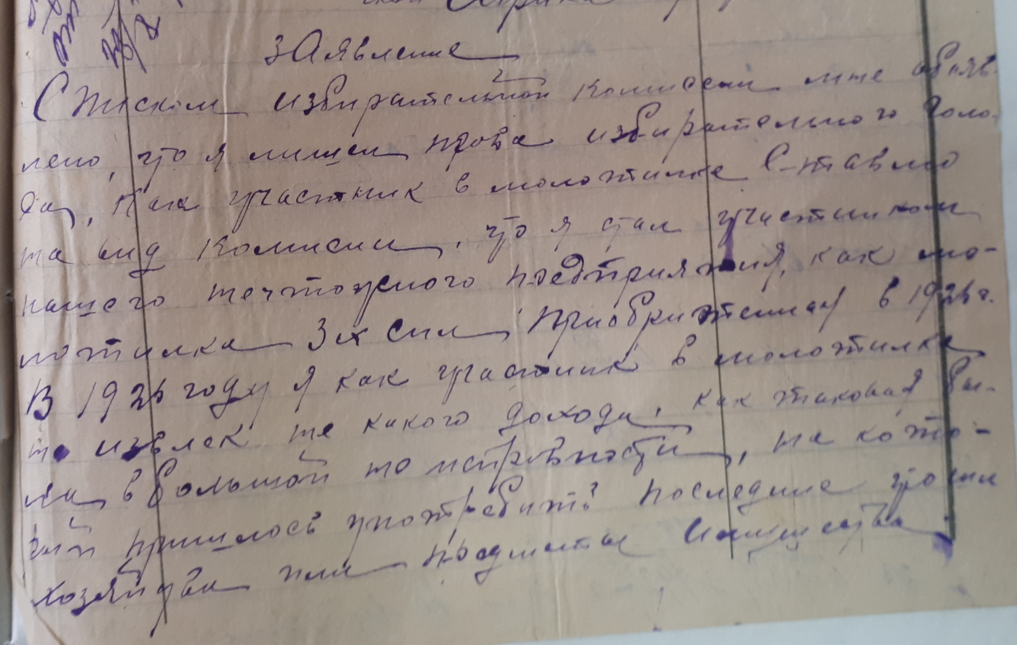 Дело в том, что Михайленко, председатель Шелковского станичного избиркома, член ВКП(Б), был переброшенный перед выборами в Шелковскую из ст. Каргинской, а его жена в Каргинской учительствовала. Вопрос перевода жены в Шелковскую школу интересовал Михайленко и он запрашивал учителей Шелковской школы о согласии на перевод в Каргинскую. Не получив согласия он стал действовать для этой цели как предизбиркома. Лишение меня избирательного голоса произошло без документальных данных от официальных учреждений. Среди поданых мной материалов на обжалование приговора находилась справка Шелковского сельсовета о моей работе в Шелковской. Справка была подписана предсовета и секретарем. Узнав об этом, Михайленко с пеной у рта стал напирать на предсовет, доказывал, что справка выдана незаконно. Михальченко стремился к тому, чтобы дело затянуть и справки я не получил. Михальченко после лишения стал давить на инспектора Районо Мельникова, добиваясь снятия меня с работы. В результате многих неприятных действий Районо, опротестованных мною, я все же был снят с заведования школой и стал учителем в той же школе. Увлекаясь травлей, Михальченко предлагал удалить меня даже с избы-читальни. На мой запрос о ходе моего обжалования Михайленко ответил, что материал отослан в Кизлярскую окружную избирательную комиссию, а через два месяца после лишения выяснилось, что материал лежит в сельсовете без движения.