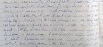 …уже насточертело мне писать вам запросы о том, когда же наконец вы разберете мой материал. Вас уже неоднократно подталкивала на это и Москва, но по-видимому вы неисправимые. В последний раз на вопрос от меня, вы ответили, что материал будет разобран на первом же заседании. после этого прошло уже полтора месяца, а … заседания все нет. Вы этим уподобляетесь в некоторой степени животному, лежащему на сене. Сами не разбираете и в Москву не пускаете. Запасы бюрократизма у вас, по-видимому, неистощимы, несмотря на то, что вы центральная инстанция. Я допускаю возможность того, что вы завалены работой и нужно считаться и с тем, что мой материал находится у вас уже около 3-х лет, а после ходатайства Рика 6 мес.