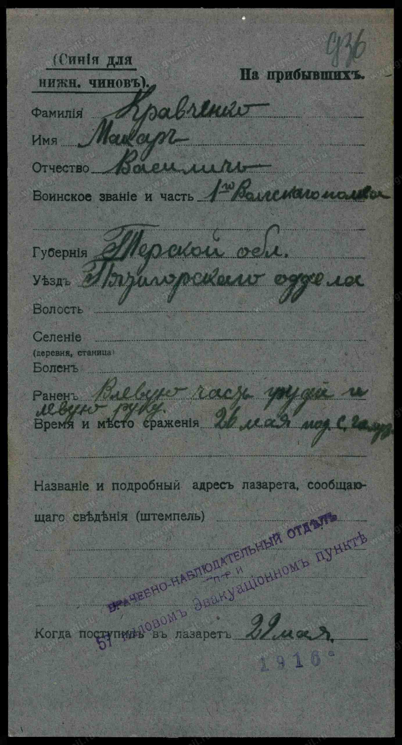 Дата выбытия 26.05.1916