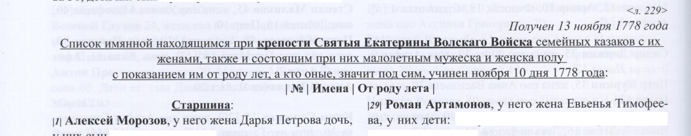 В 1778 году в созданные станицы при 5-ти крепостях были переселены семьи Волгских (Донских) казаков. Согласно архивным сведениям из Российского Государственного Архива Древних Фактов г. Москва РГАДА Ф23 Оп. 1.Д.8, которые опубликованы в книге Гусева В.А. «Казаки на Дону, Волге и Кавказе» 14-й выпуск имеются именные списки пяти крепостей - в крепости Святого Георгия на 1 января 1779 года было 298 человек взрослого населения, в крепости Святой Марии на 23 ноября 1778 года было 241 человек, в крепости Святого Павла на 10 ноября 1778 г. было 191 человек, в крепости Святой Екатерины на 10 ноября 1778 г. было 234 человека, в крепости Святого Андрея на 23 ноября 1778 г. было 249 человек.