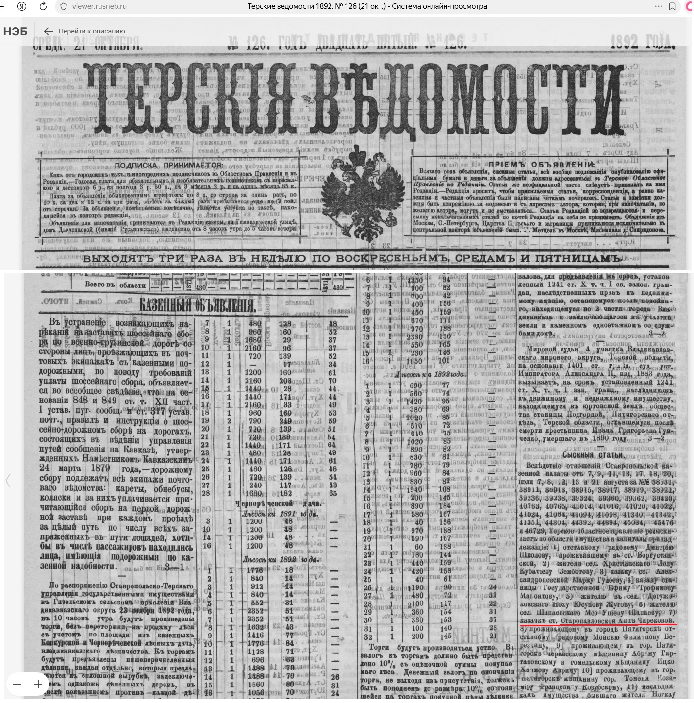 Сыскные статьи // Терские ведомости 1892 № 126 (21 окт.)