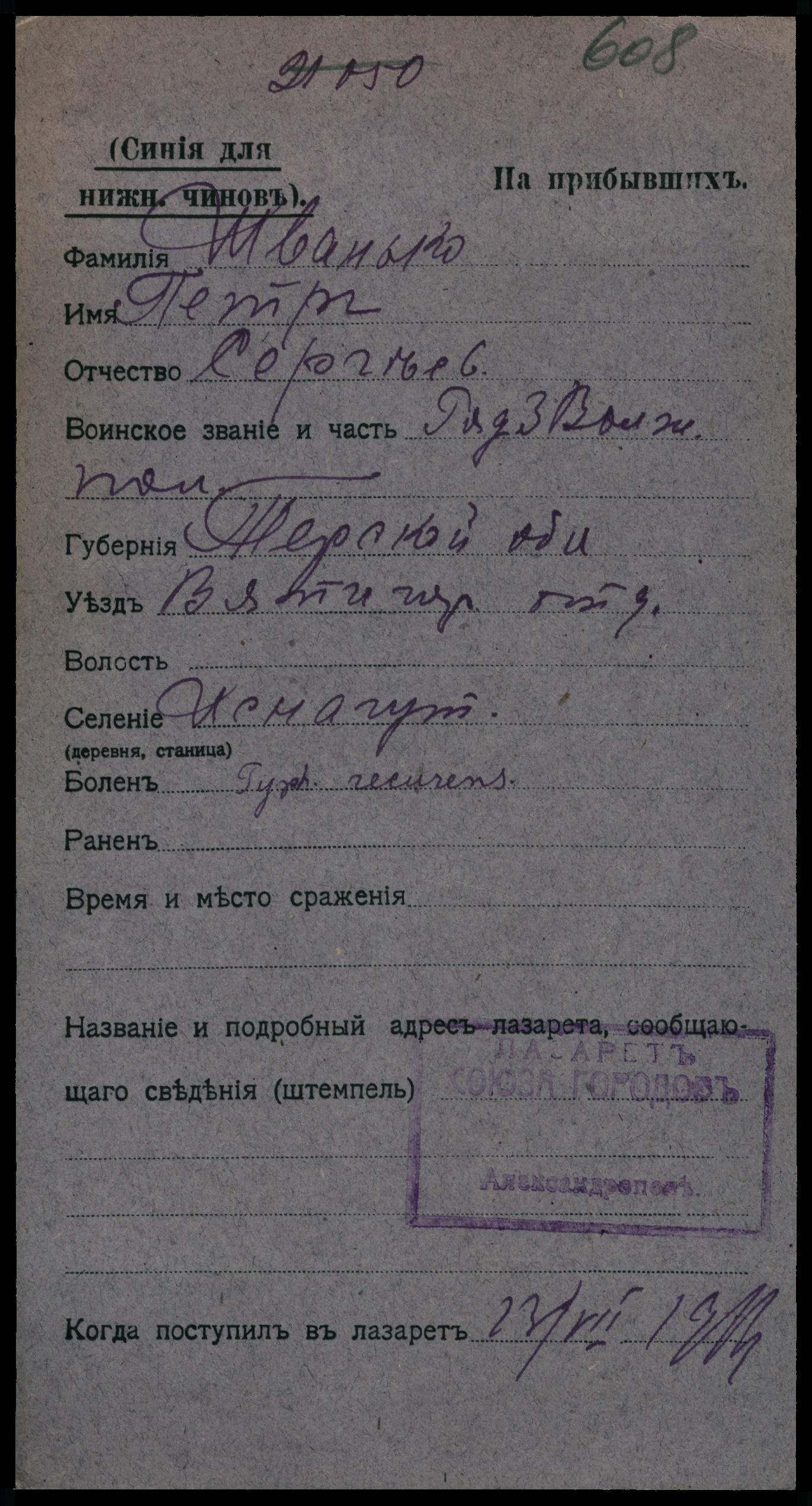 ( Название населенного пункта в карточке сильно искажено, предполагаю что все-таки это ст. Ессентукская, так же искажена думаю и фамилия ... )