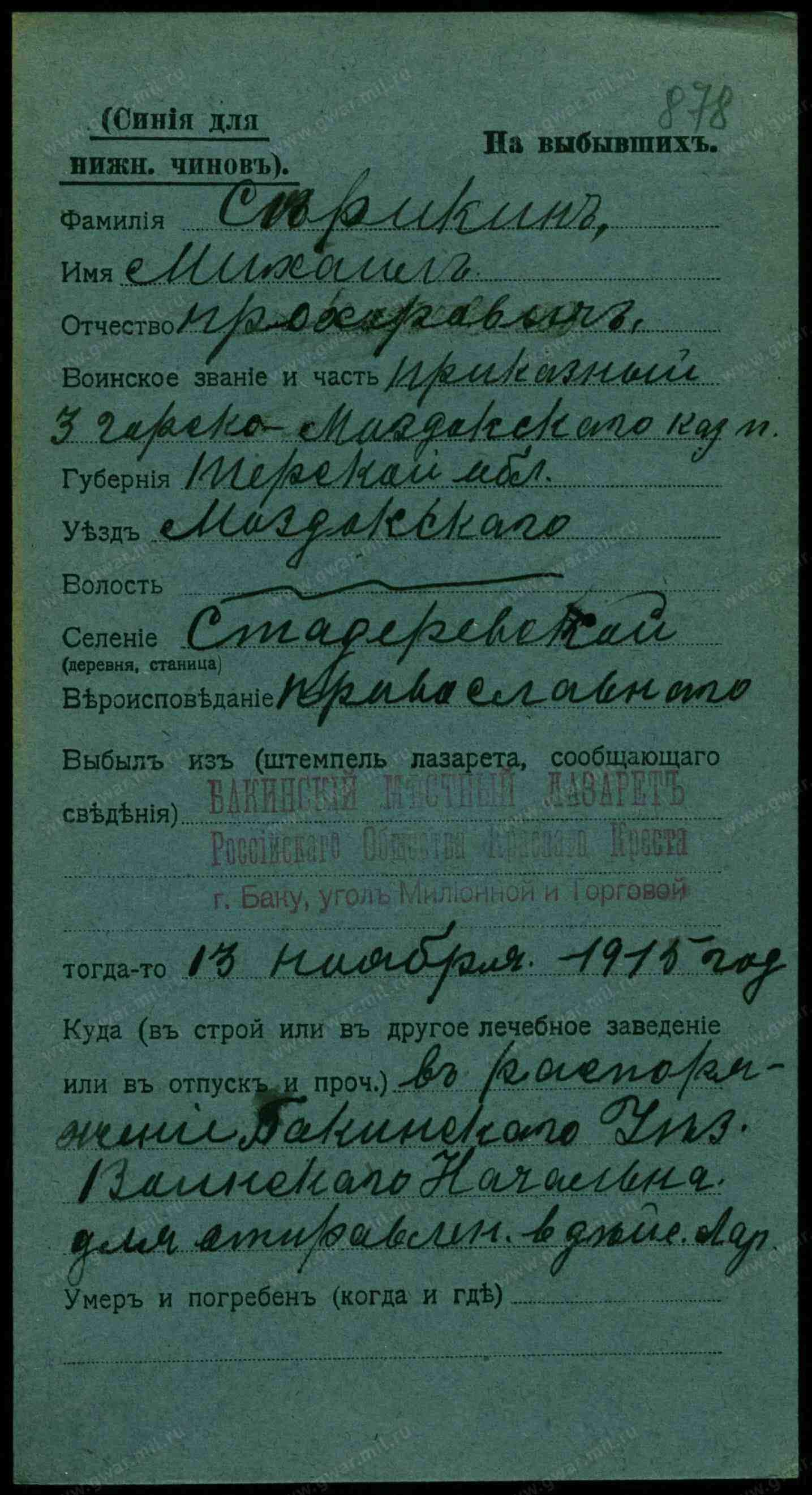 Мл. сержант __.__.1914 Ставропольский край, Моздокский р-н , Место службы: 2 УР. Донесение о потерях