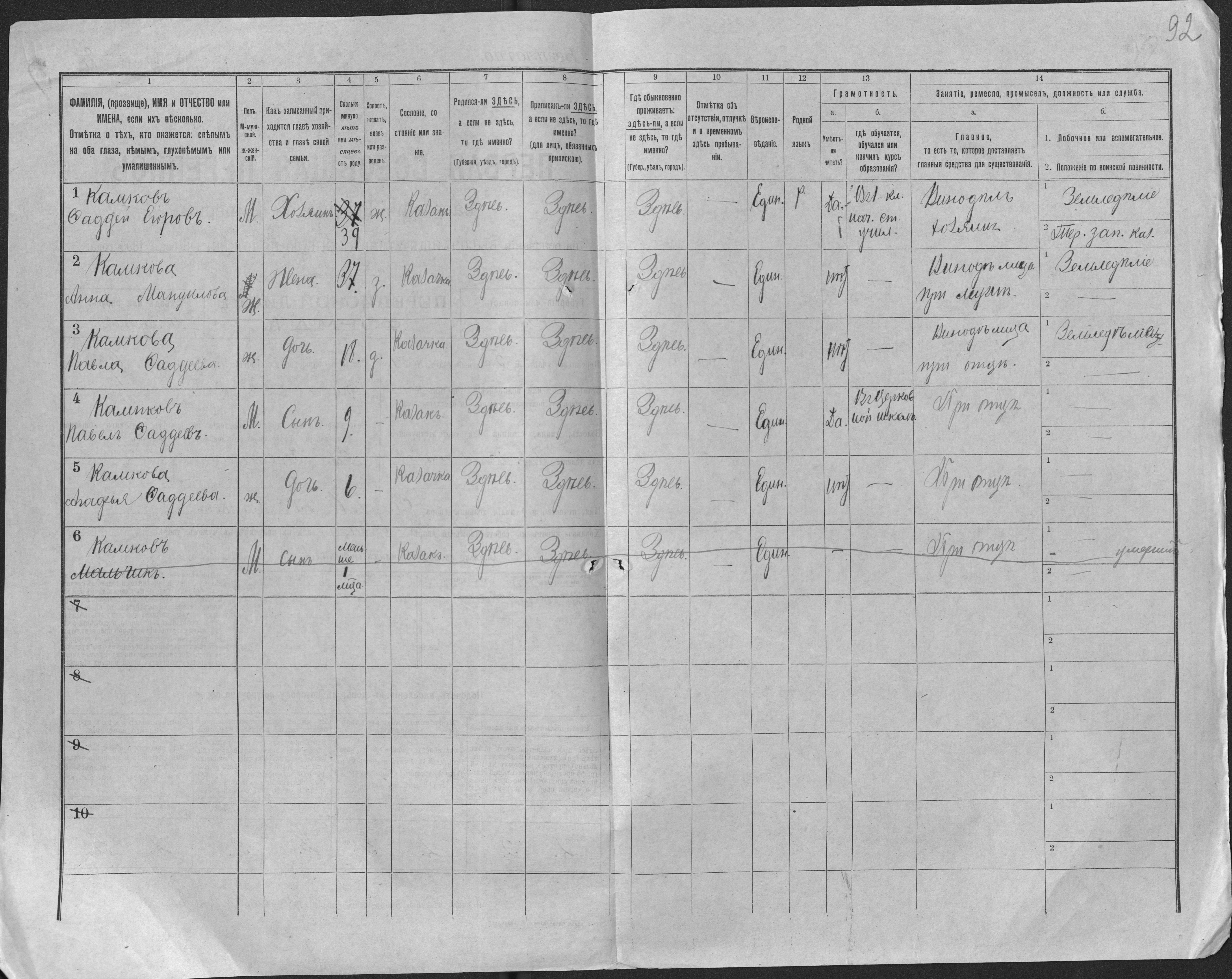 В 1851 году есаул Камков был назначен ответственным от Гребенского полка при передаче в оброчное содержание участков с травою желтинником.