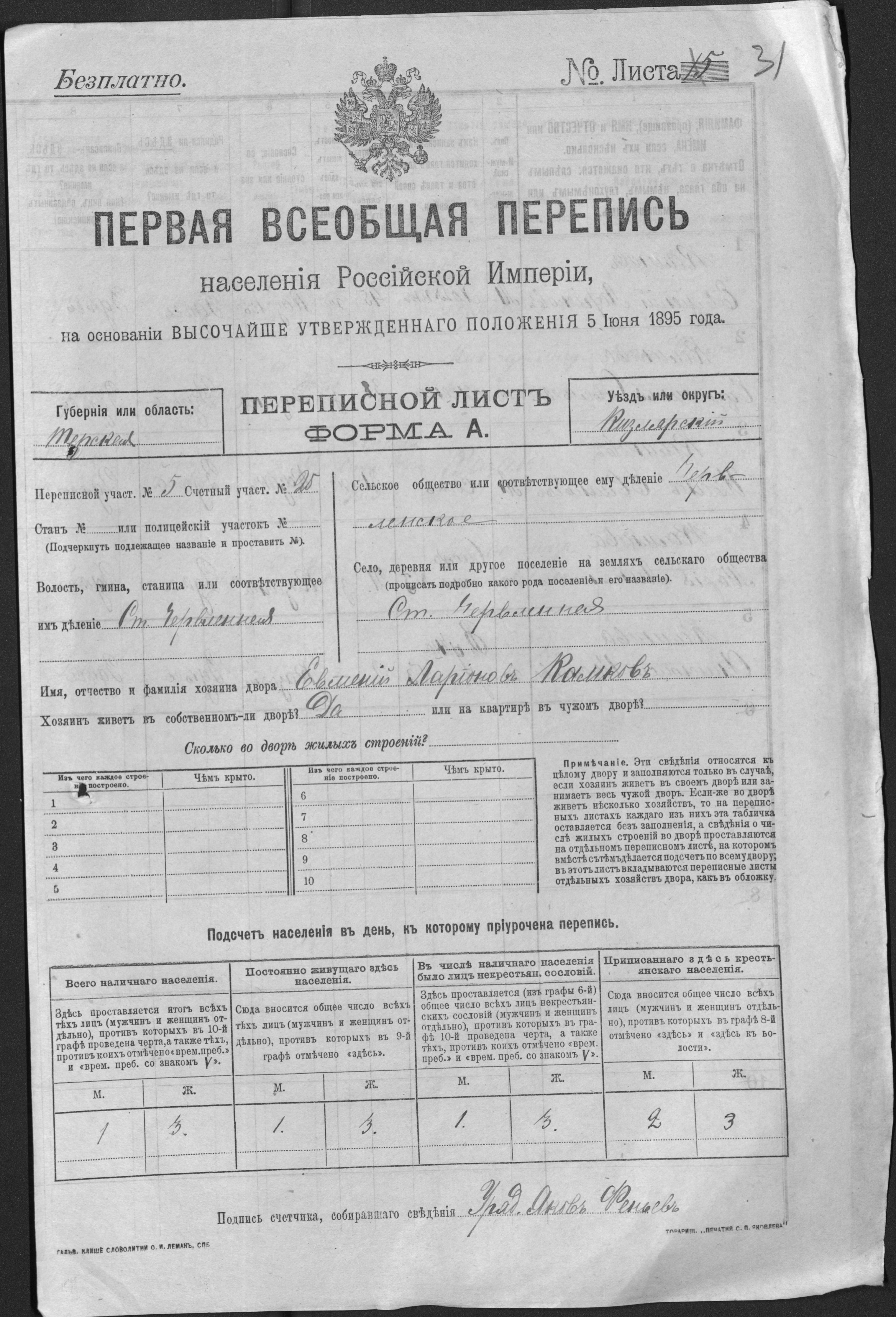 Камков Егор Ларионов Червленная ПС урядников 1873г.