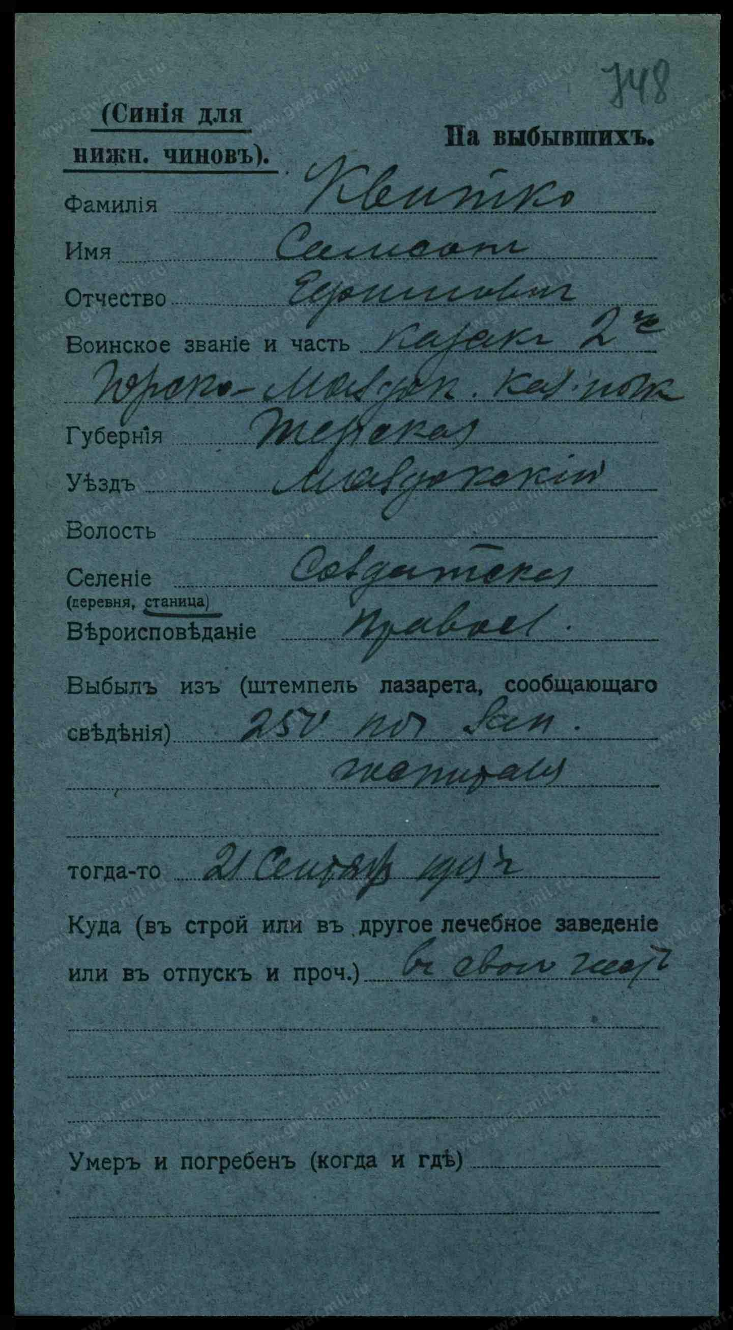 Казак Фадей Квитко – № 26748 (Ст. Солдатская).