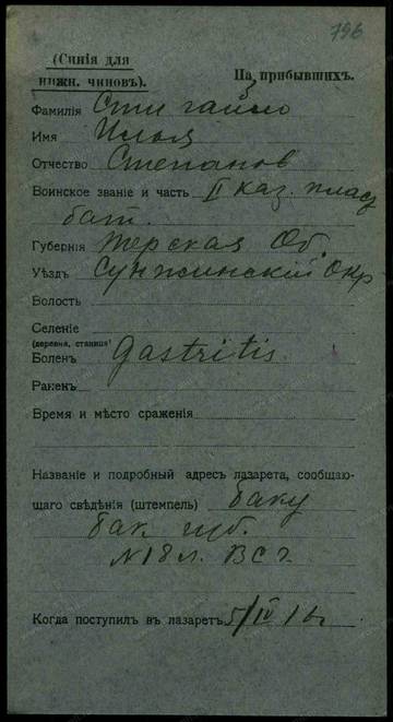 Сержант __.__.1913 Кабардино-Балкарская АССР, Майский р-н, Пришибский с/с, ст. Пришиб. Донесение о потерях