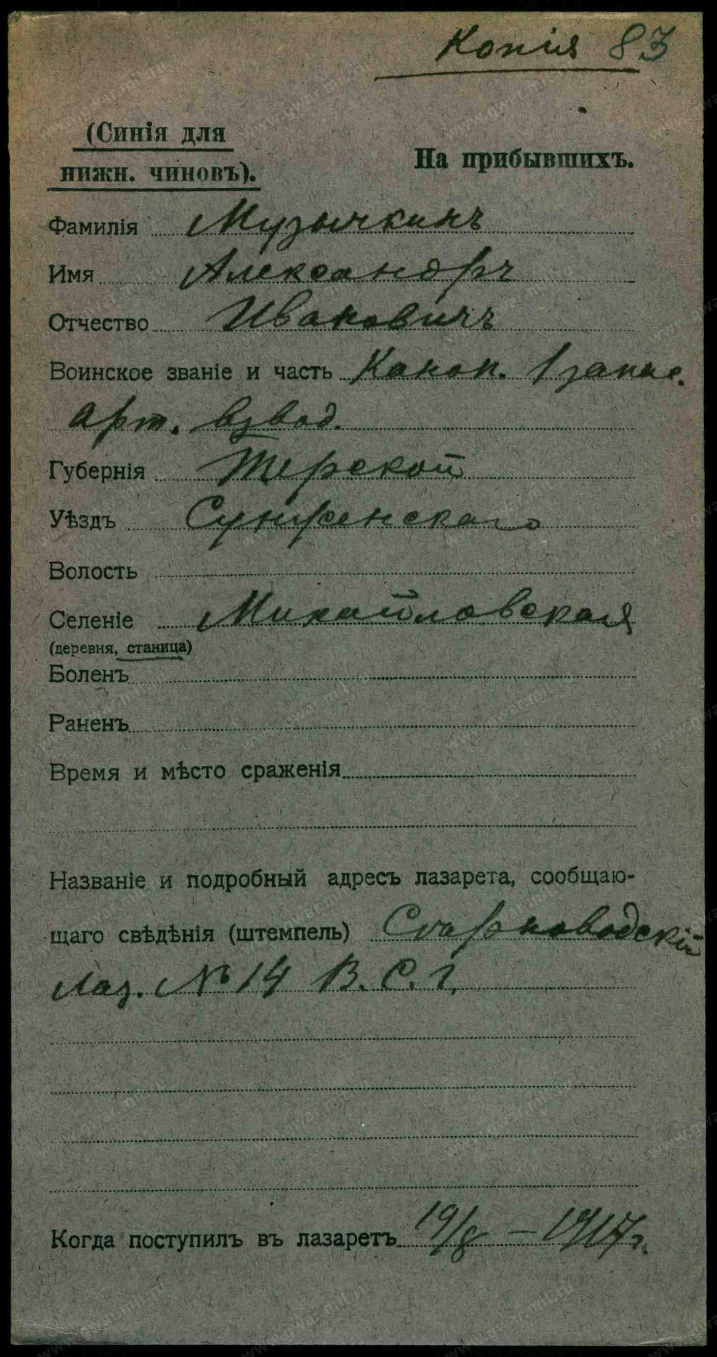 P.S. Подскажите пожалуйста, 1-й запасной артиллерийский полк или 3-я Терская горно-конная батарея имели ли отношение к казачьим частям и соответственно мог ли казак там служить...?