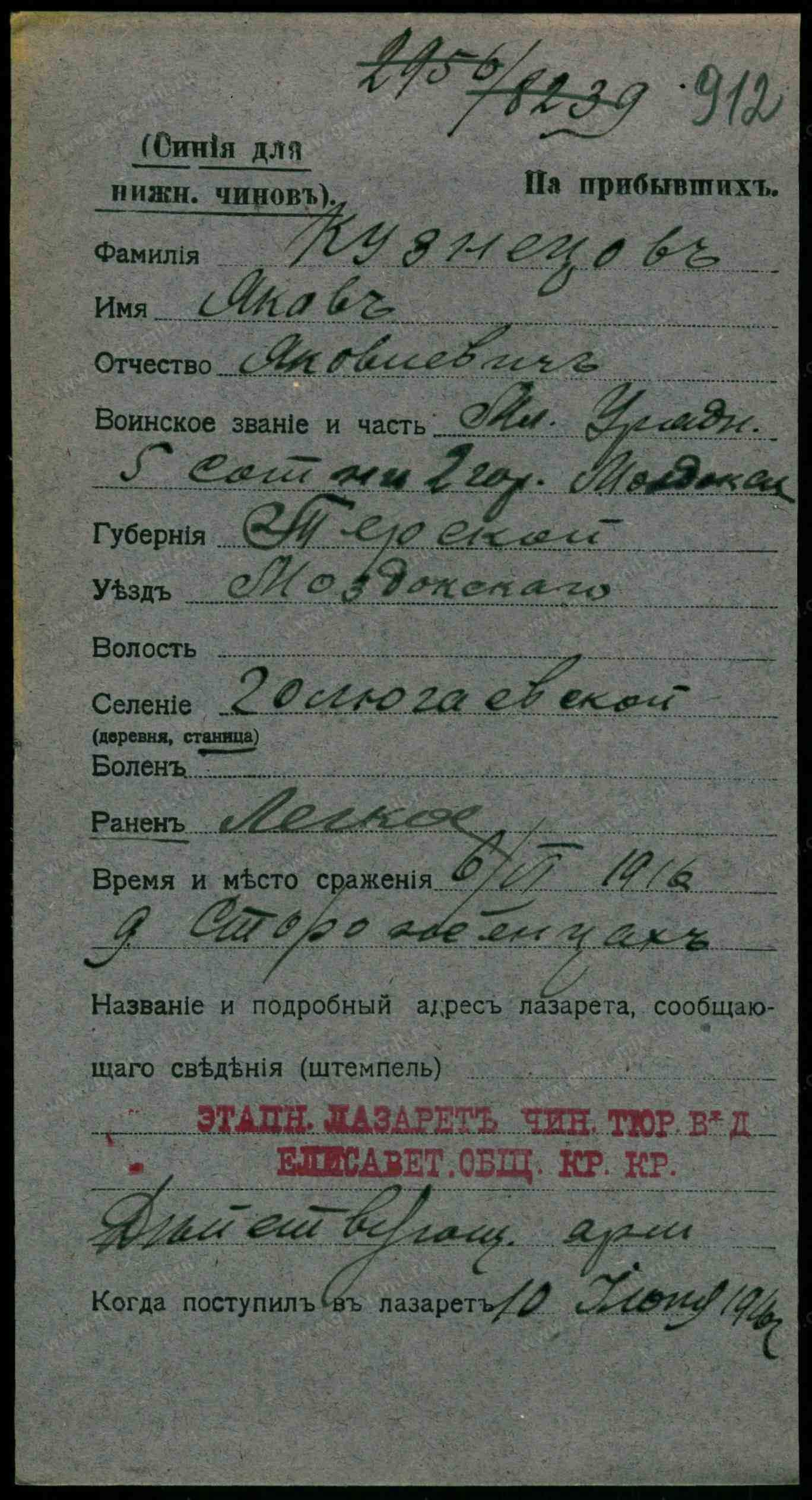 Красноармеец __.__.1913 Ставропольский край, Курский р-н, ст. Галюгаевская. Донесение о потерях