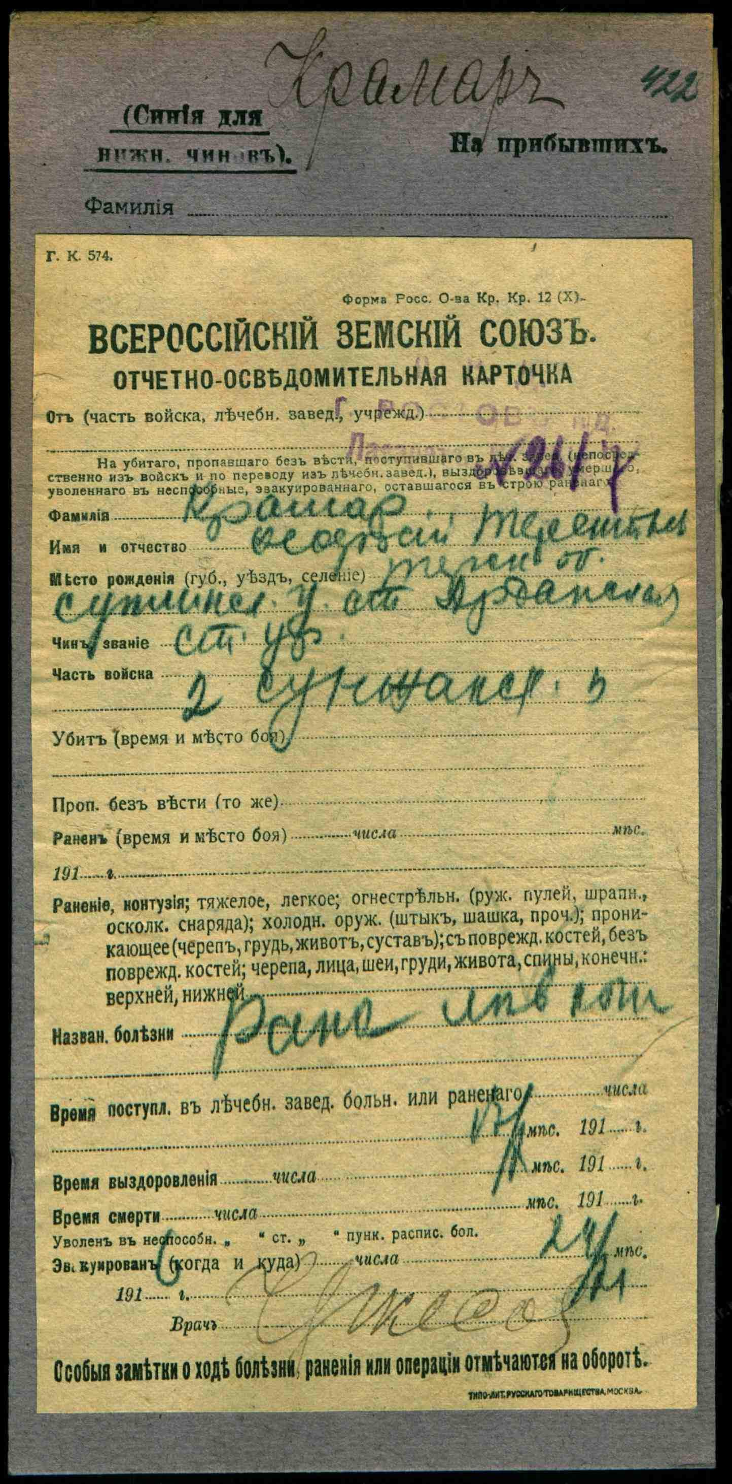 Капитан __.__.1916 Северо-Осетинская АССР, Ардонский р-н, х. Ардонский. Сводная картотека