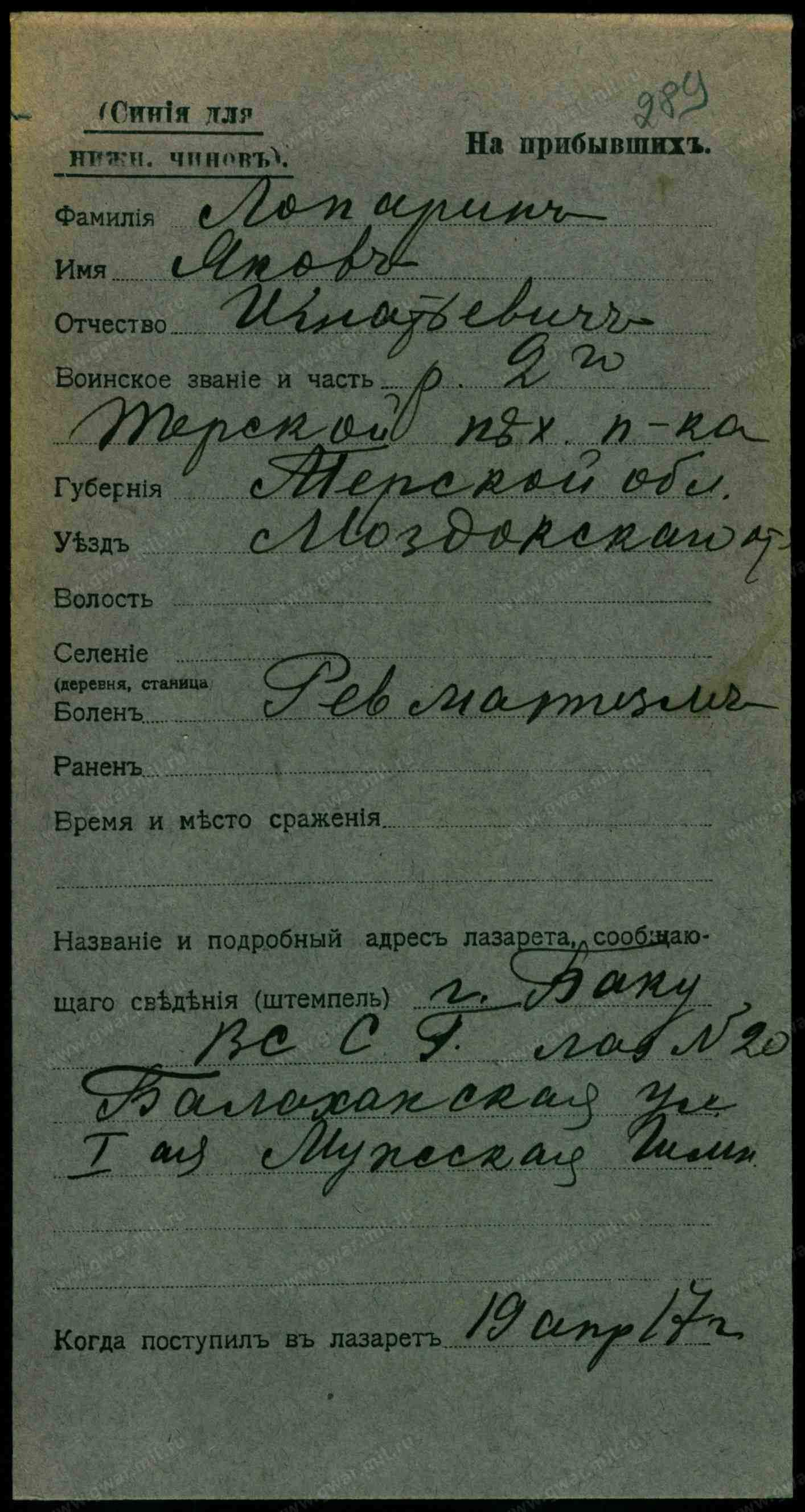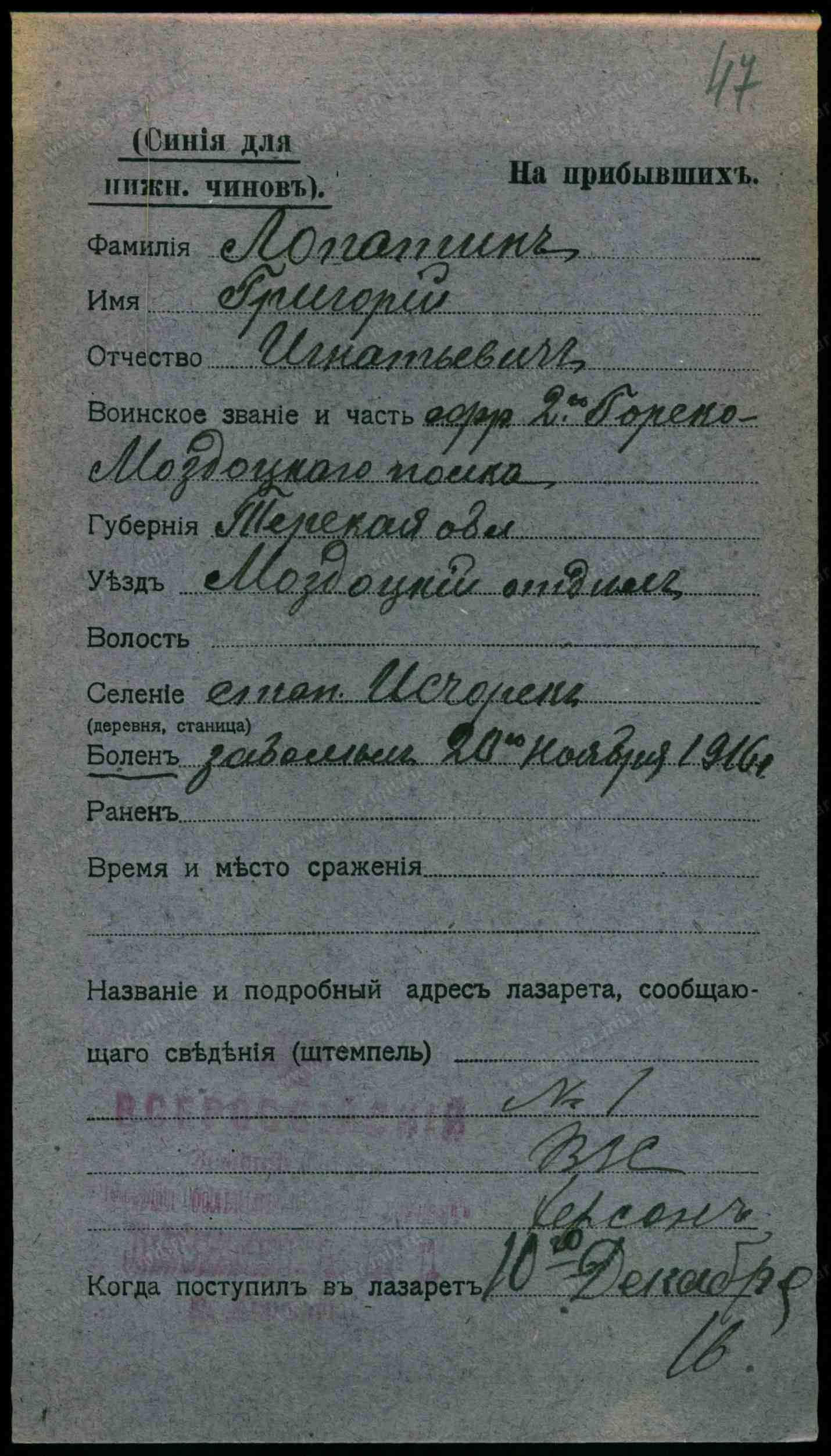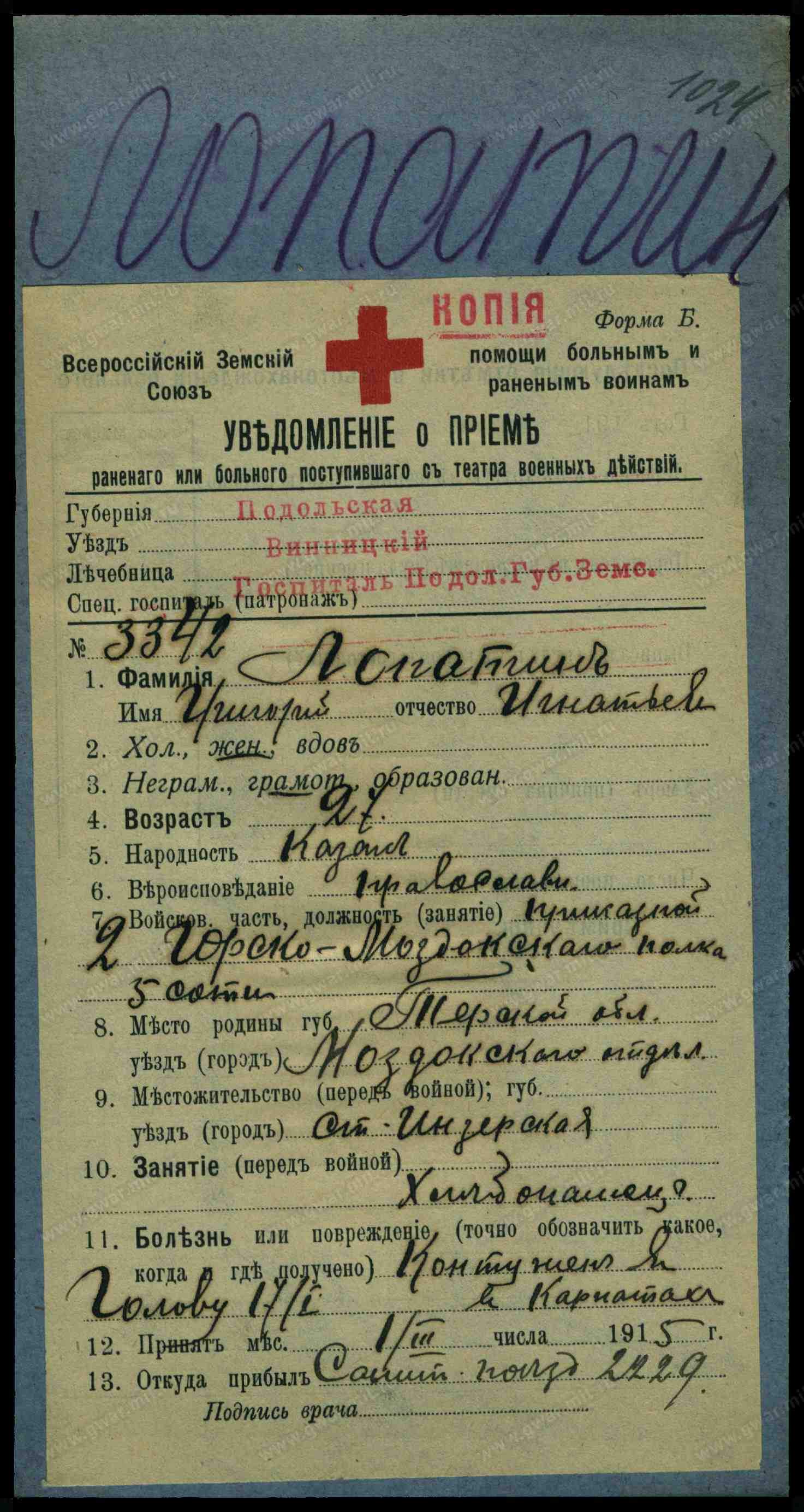 Фонд Картотека бюро учета потерь в Первой мировой войне (офицеров и солдат)