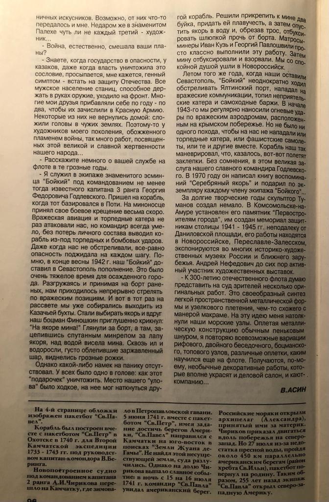 В. Асин. Пластика красоты// Морской сборник 7, 1996 г.