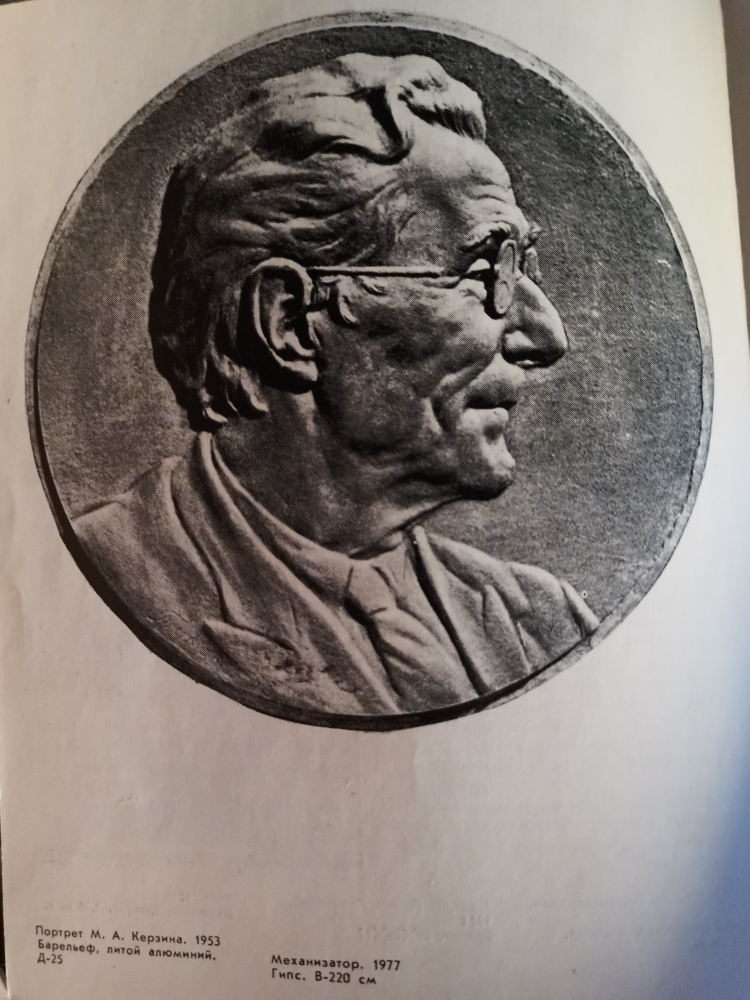 Портрет М.А.Керзина (1953), барельеф, литой алюминий. Скульптор А.Н. Туманов.