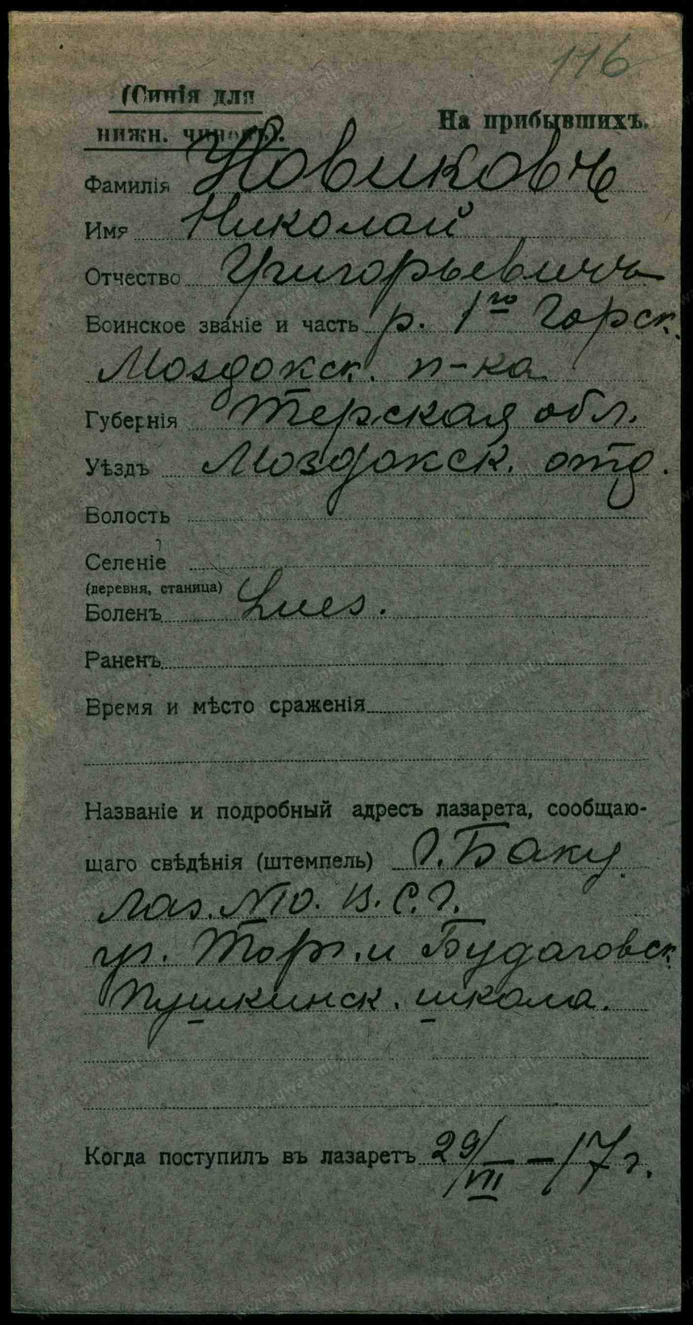 Подполковник __.__.1907 Кабардинская АССР, Прохладненский р-н, ст. Приближная. Сводная картотека