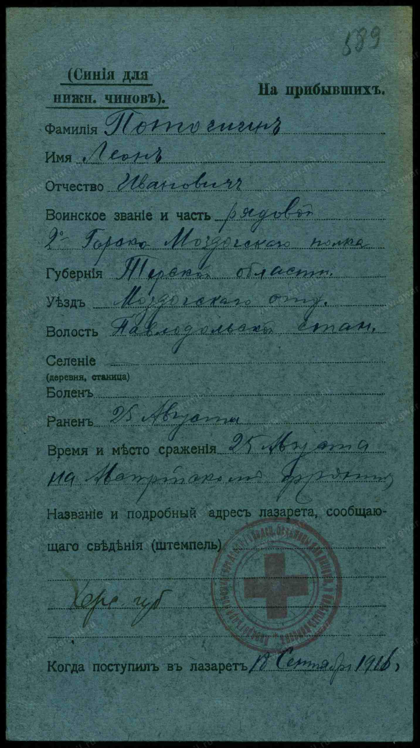Рядовой __.__.1909 Северо-Осетинская АССР, Моздокский р-н, с. Павлодольская , Место службы: Моздокский РВК, Орджоникидзевский край, Моздокский р-н. Военно-пересыльный пункт