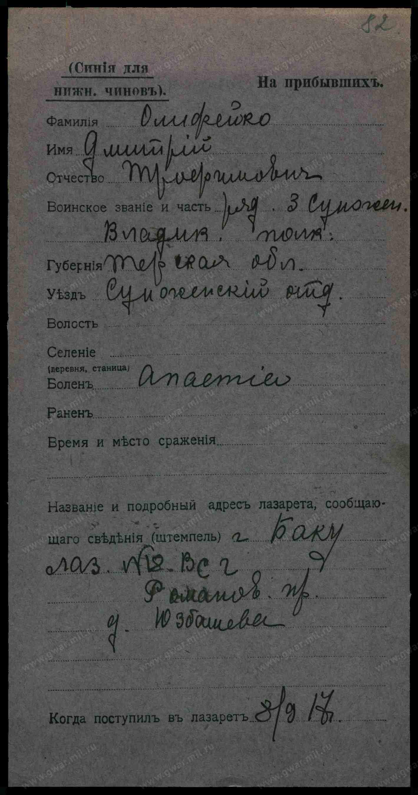 Фонд Картотека бюро учета потерь в Первой мировой войне (офицеров и солдат)