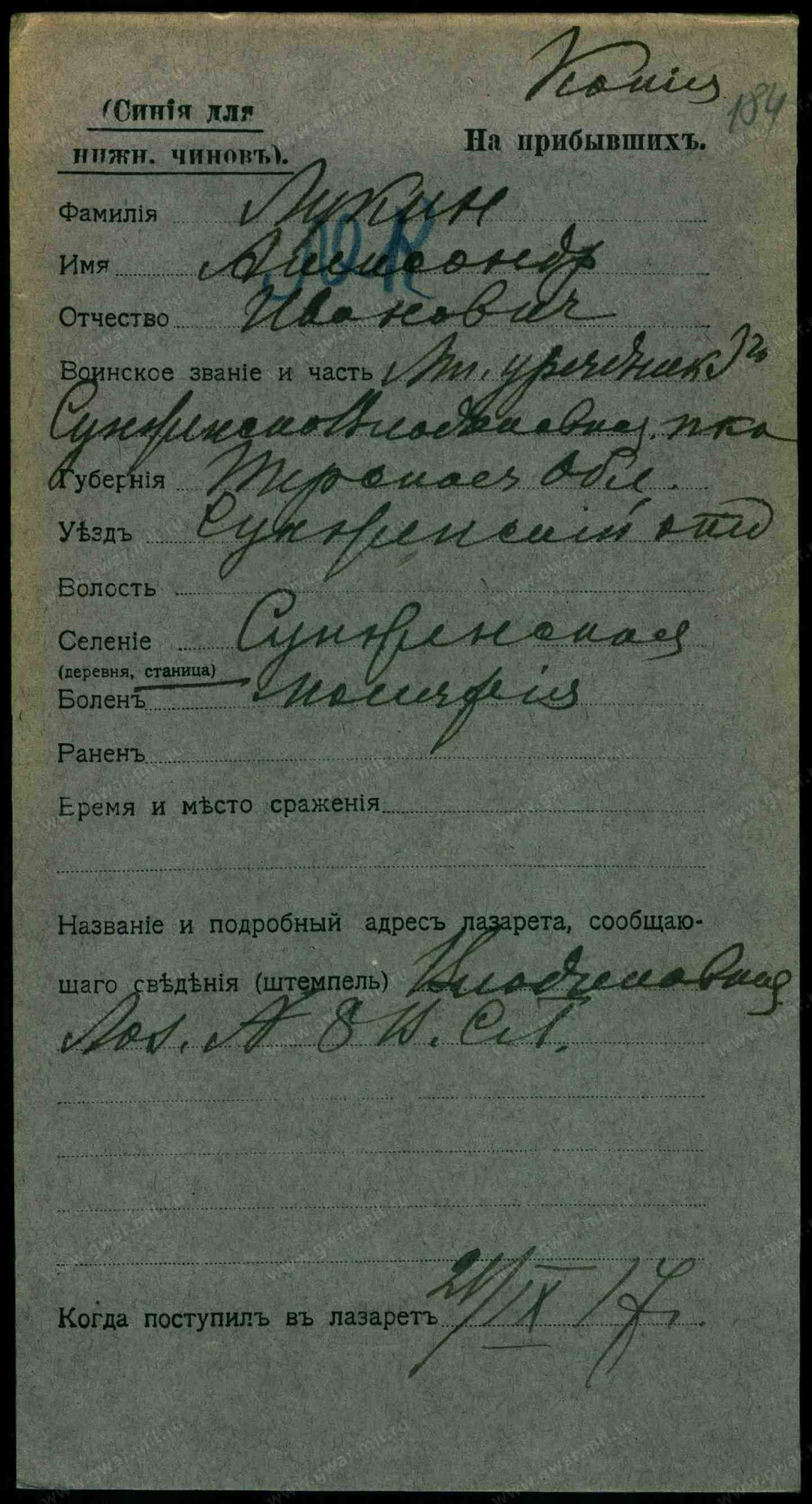 Фонд Картотека бюро учета потерь в Первой мировой войне (офицеров и солдат)