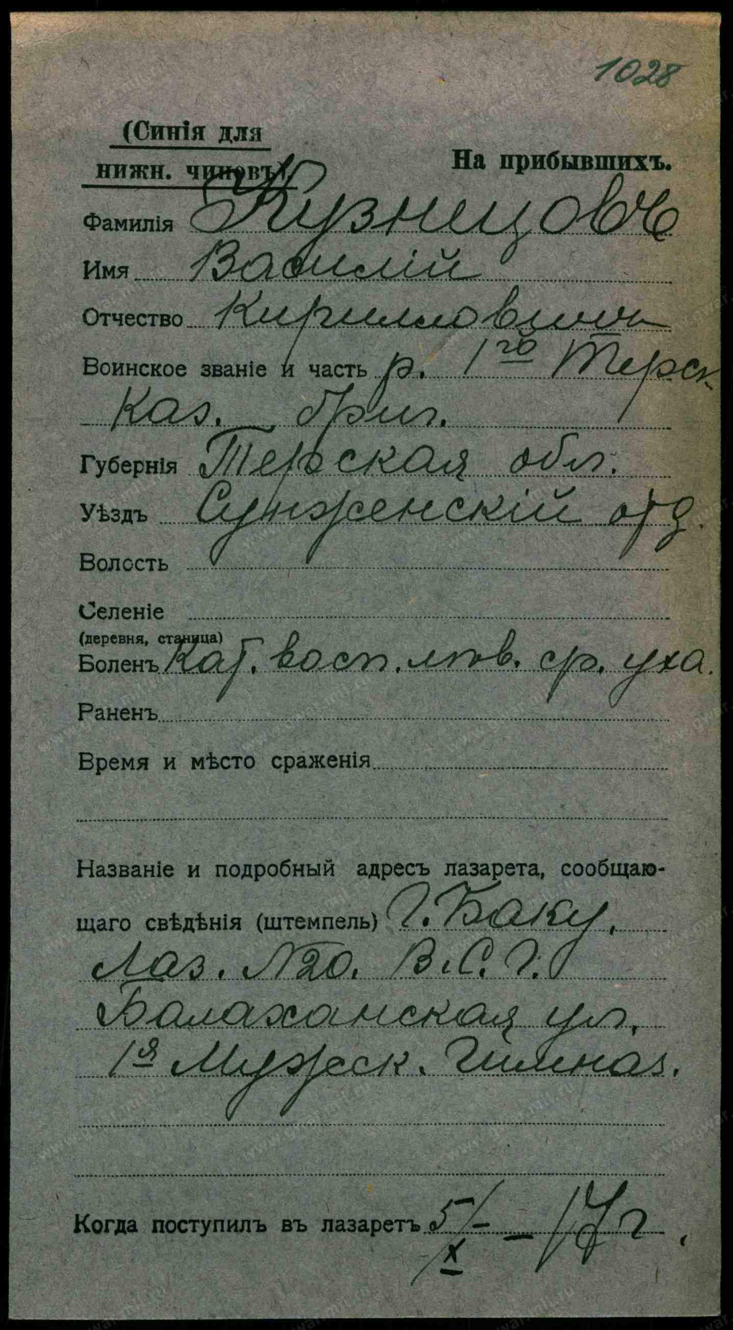 Фонд Картотека бюро учета потерь в Первой мировой войне (офицеров и солдат)