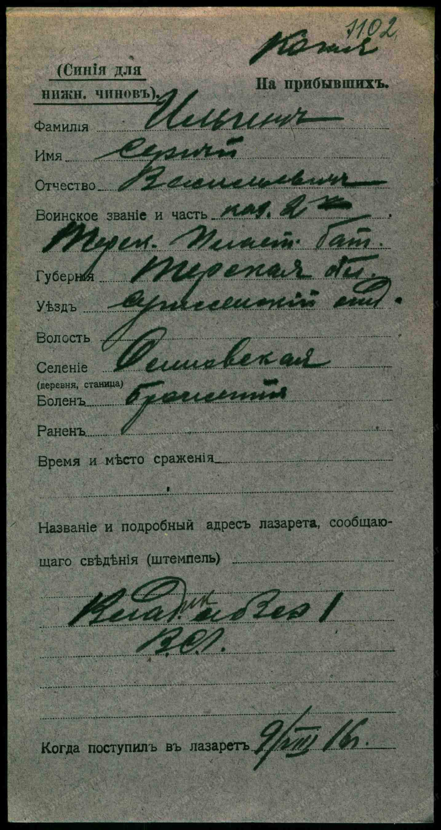 Место рождения Терская обл., Сунженский отдел, н.п. Осиповская