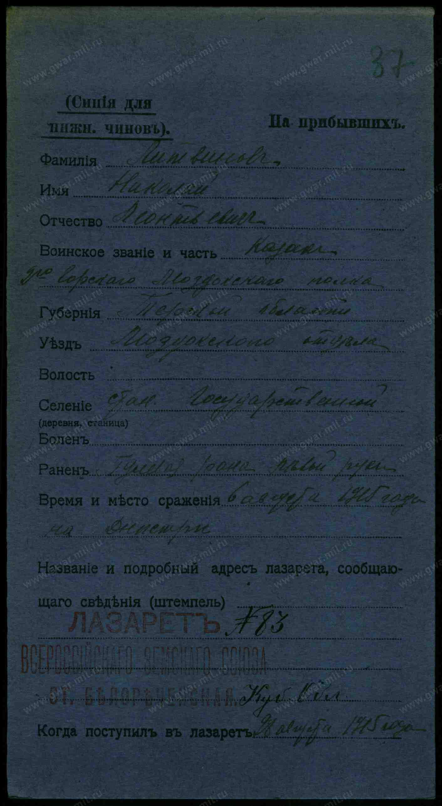 Фонд Картотека бюро учета потерь в Первой мировой войне (офицеров и солдат)