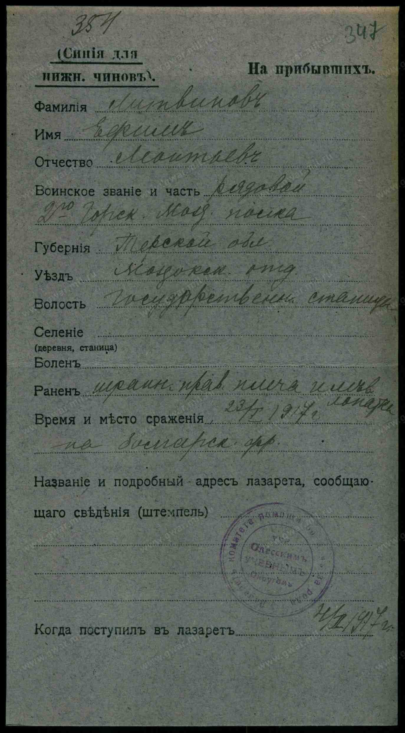 Место рождения Терская обл., Моздокский отдел, Государственная станица