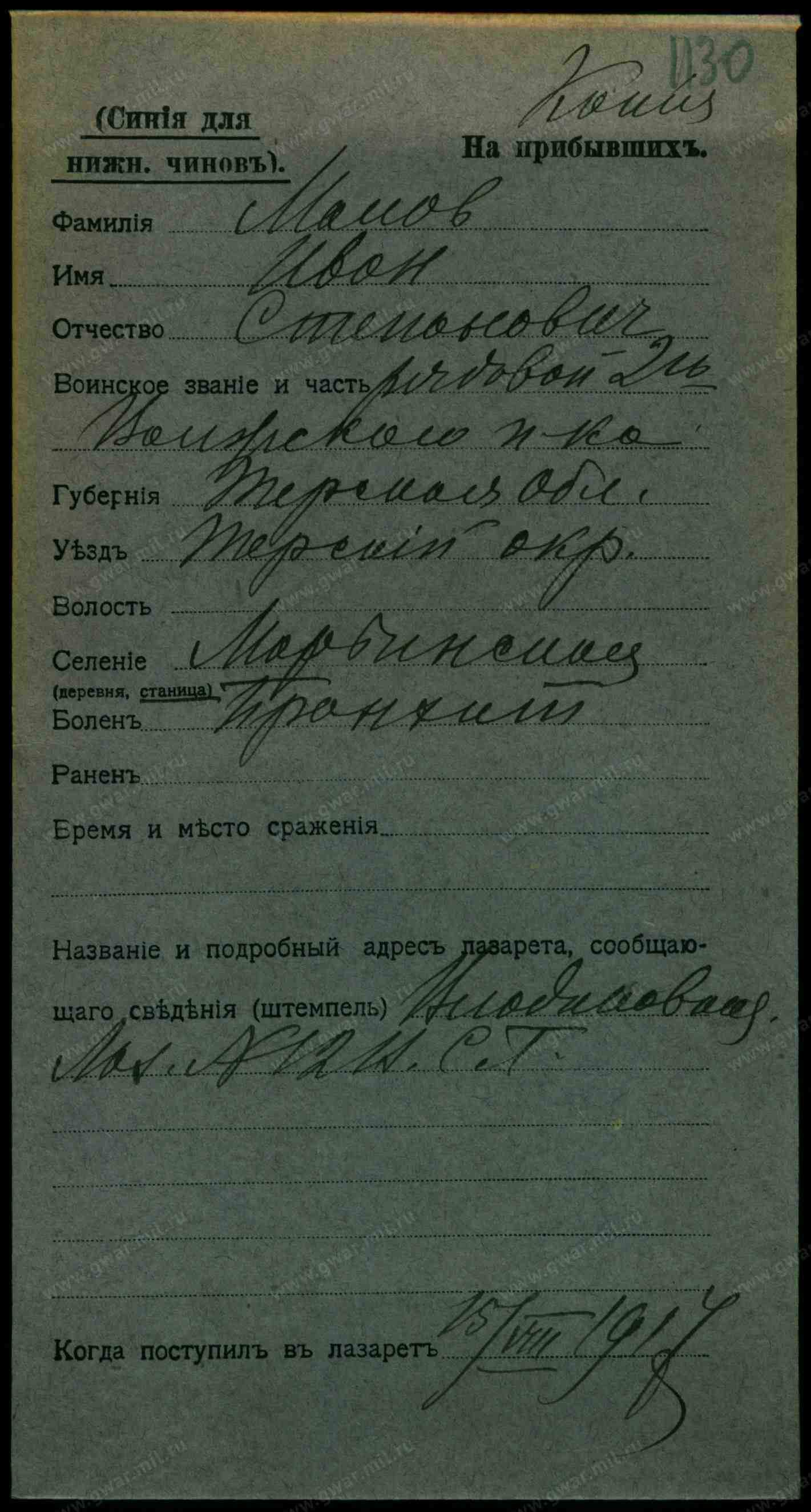 Место рождения Терская обл., Терский округ, п. Мартинский