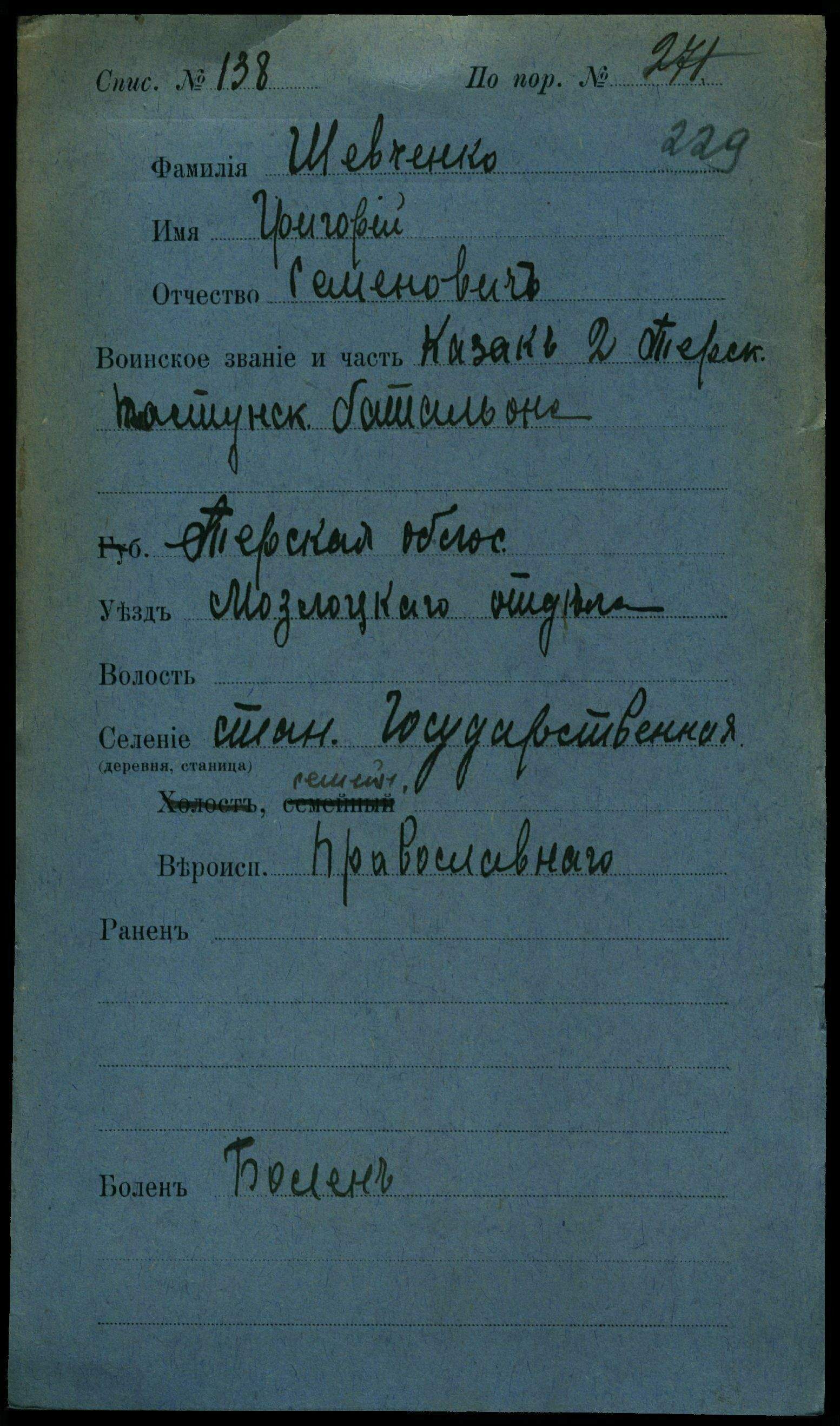 Гв. ст. лейтенант, __.__.1921 Ставропольский край, Советский р-н, станица Советская. Сводная картотека