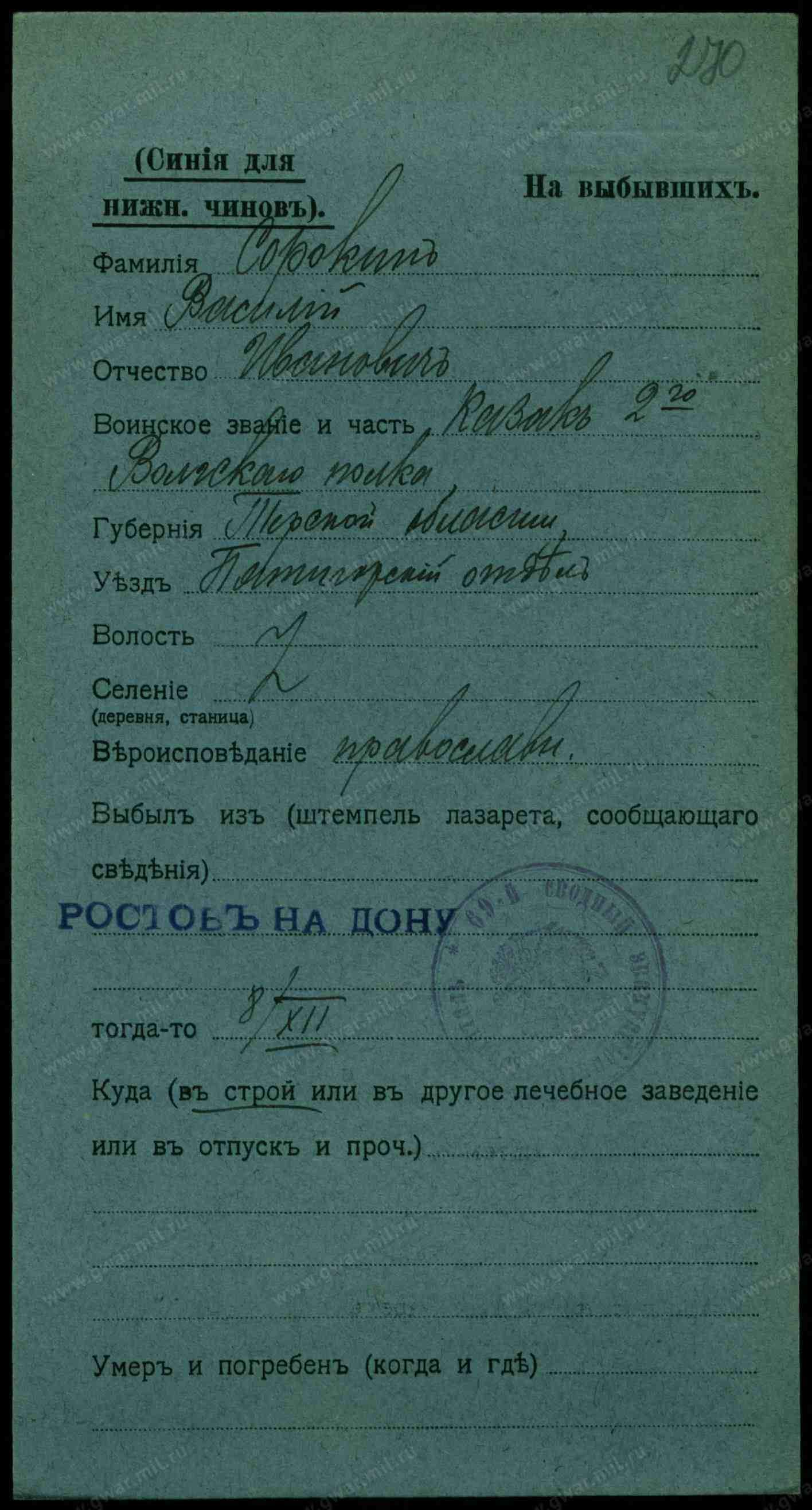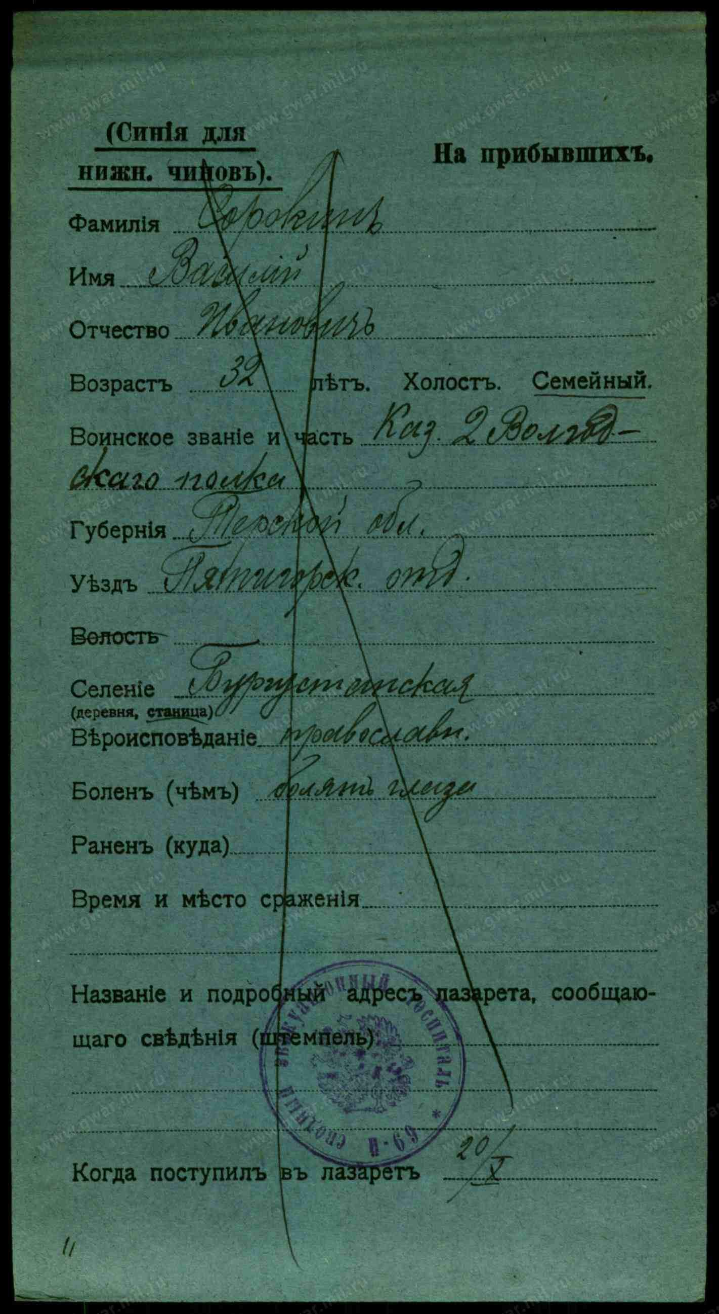 Рядовой, __.__.1900 Ставропольский край, Предгорный р-н, станица Боргустанская. Сводная картотека