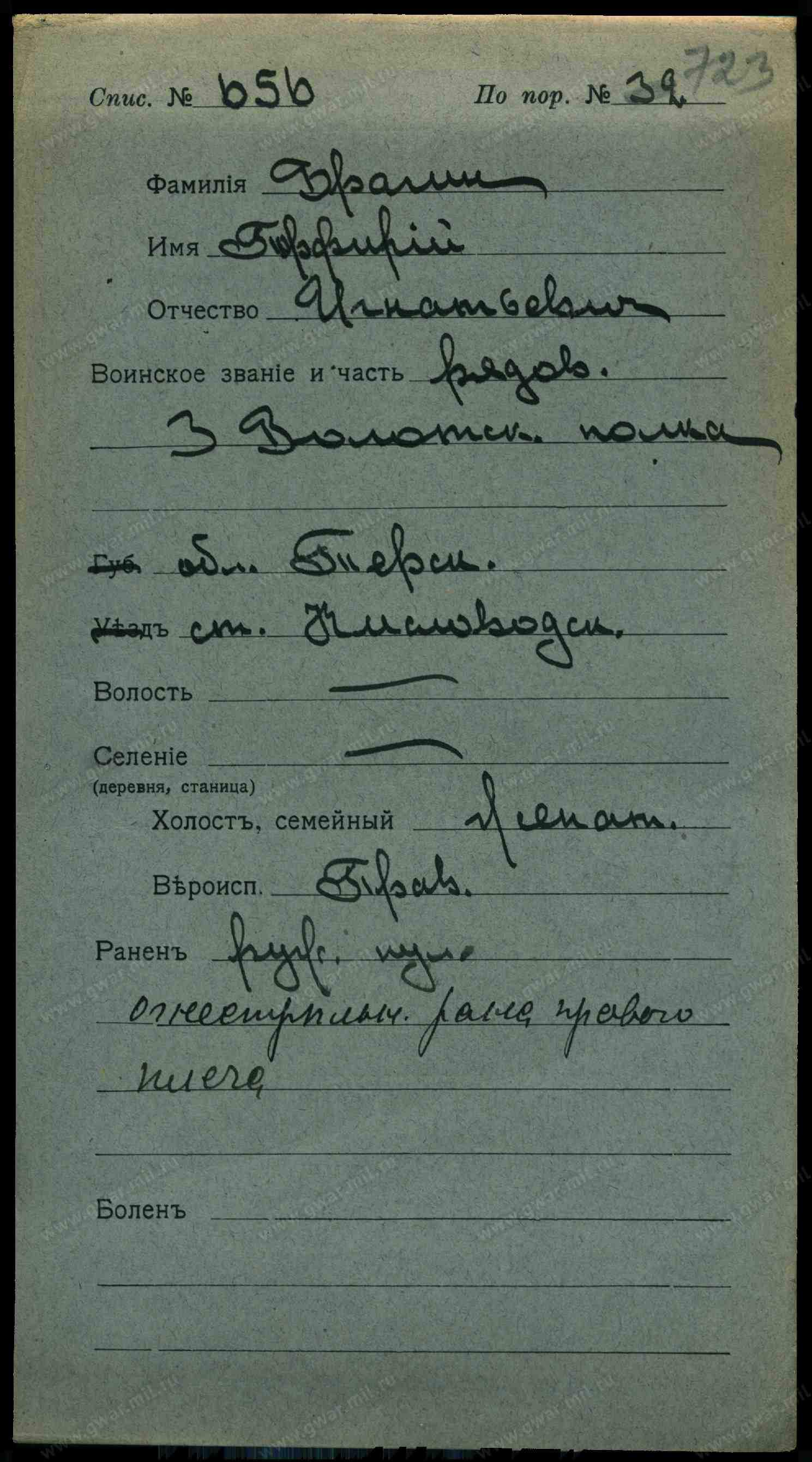 Фонд Картотека бюро учета потерь в Первой мировой войне (офицеров и солдат)