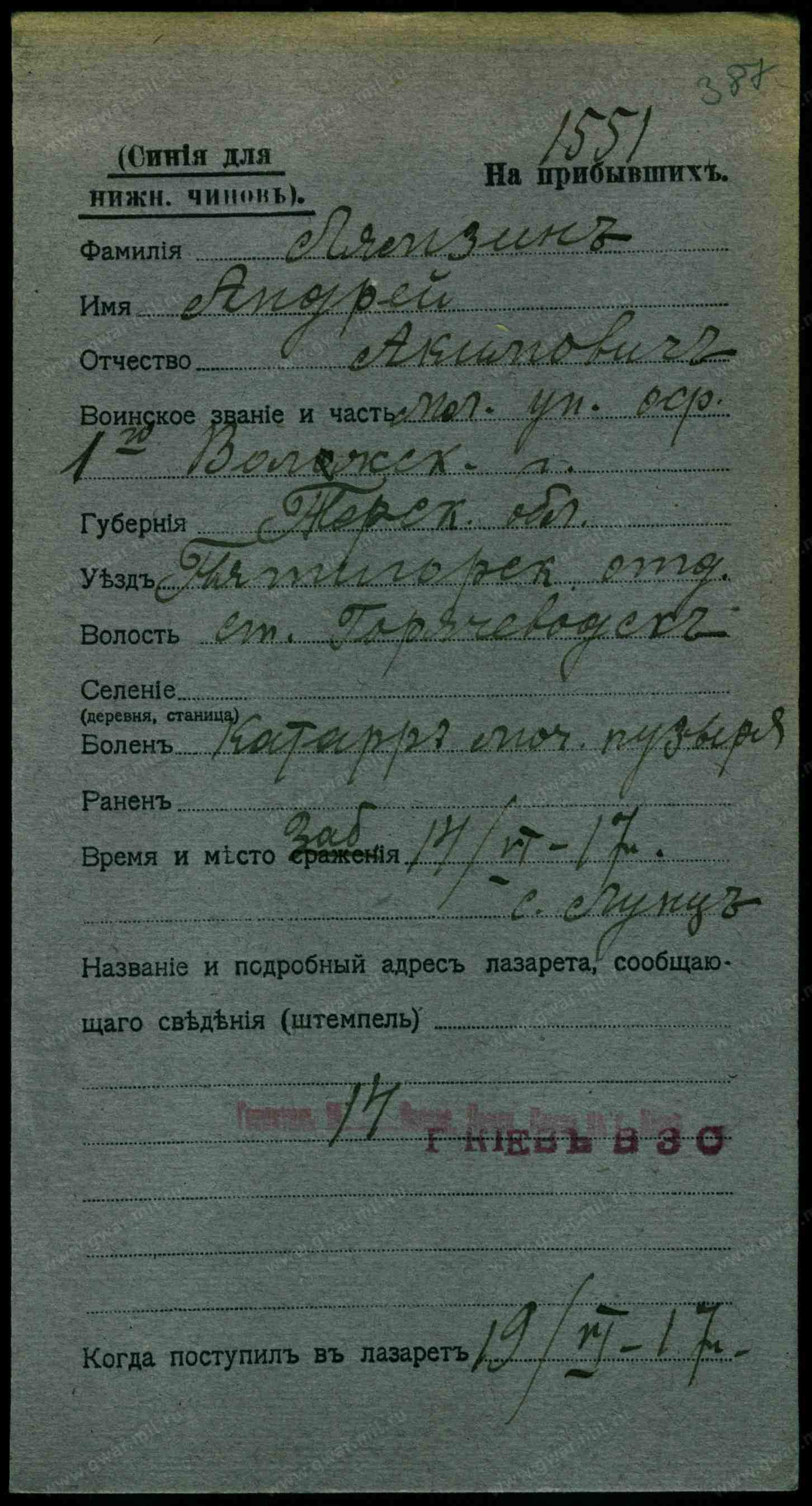 ЛЯМЗИН Андрей Акимович — 1 Волгский каз. Его Императорского Высочества Наследника Цесаревича полк, 2 сотня, казак. За то, что в конной атаке 21.07.1915 у с. Чулчице, во время рукопашной схватки, личным мужеством и храбростью содействовал успеху атаки.