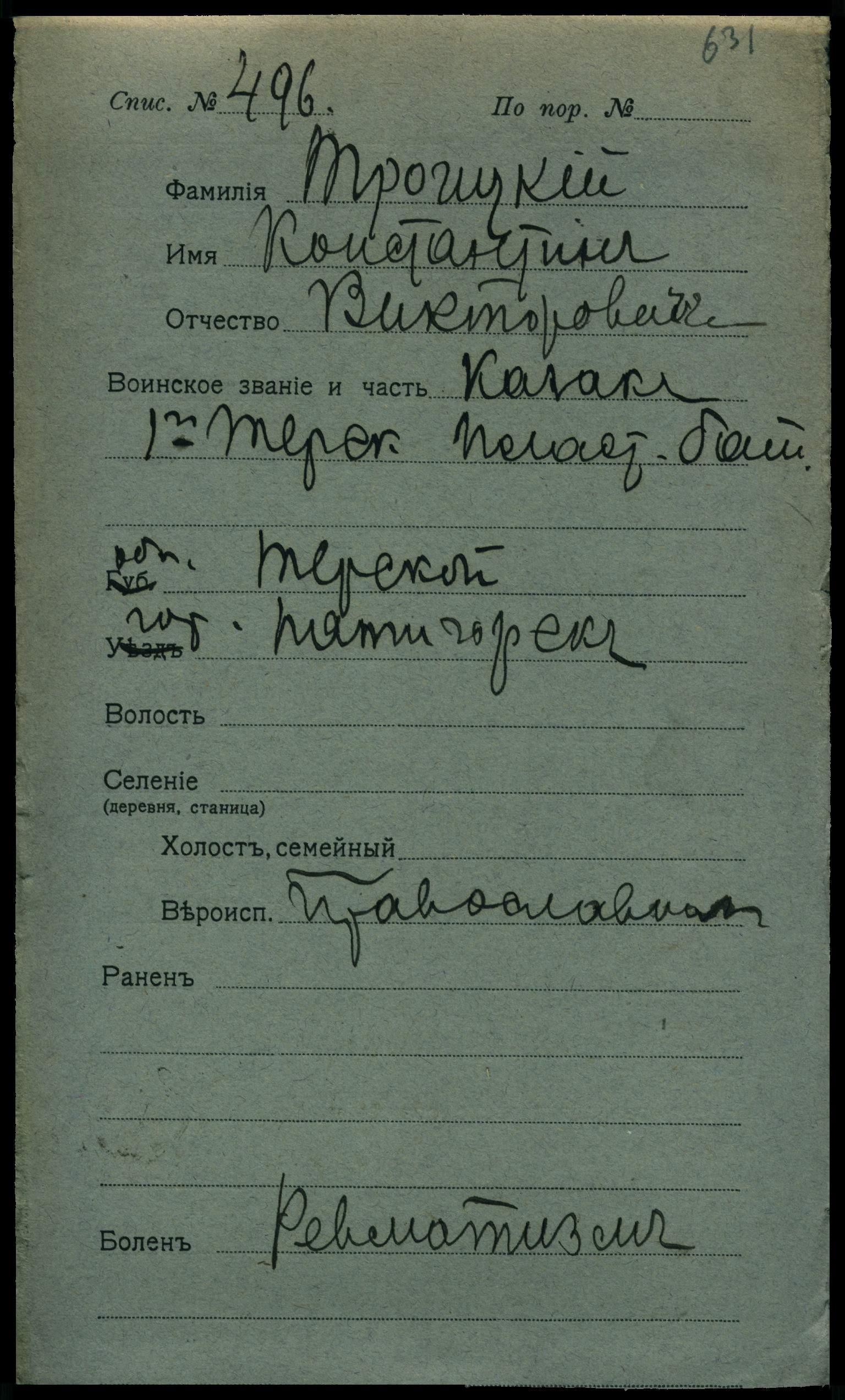 Фонд Картотека бюро учета потерь в Первой мировой войне (офицеров и солдат)