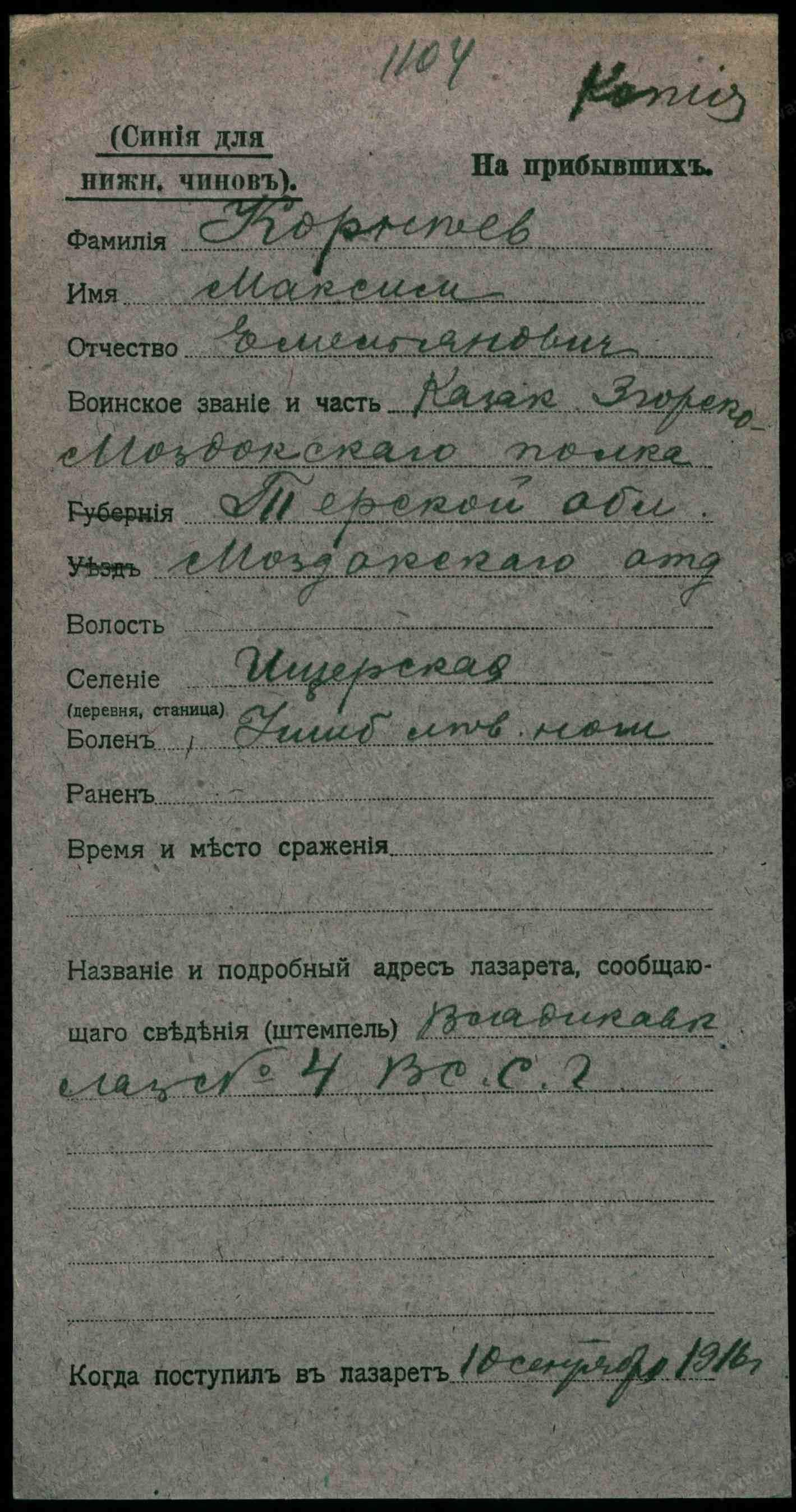 Краснофлотец, __.__.1921 Орджоникидзевский край, Наурский р-н, ст. Ищерская , Место службы: чф 12 аб ввс. Донесение о потерях