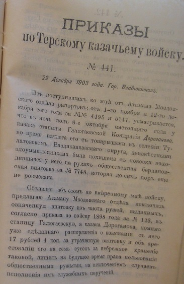 Приказы по терскому войску