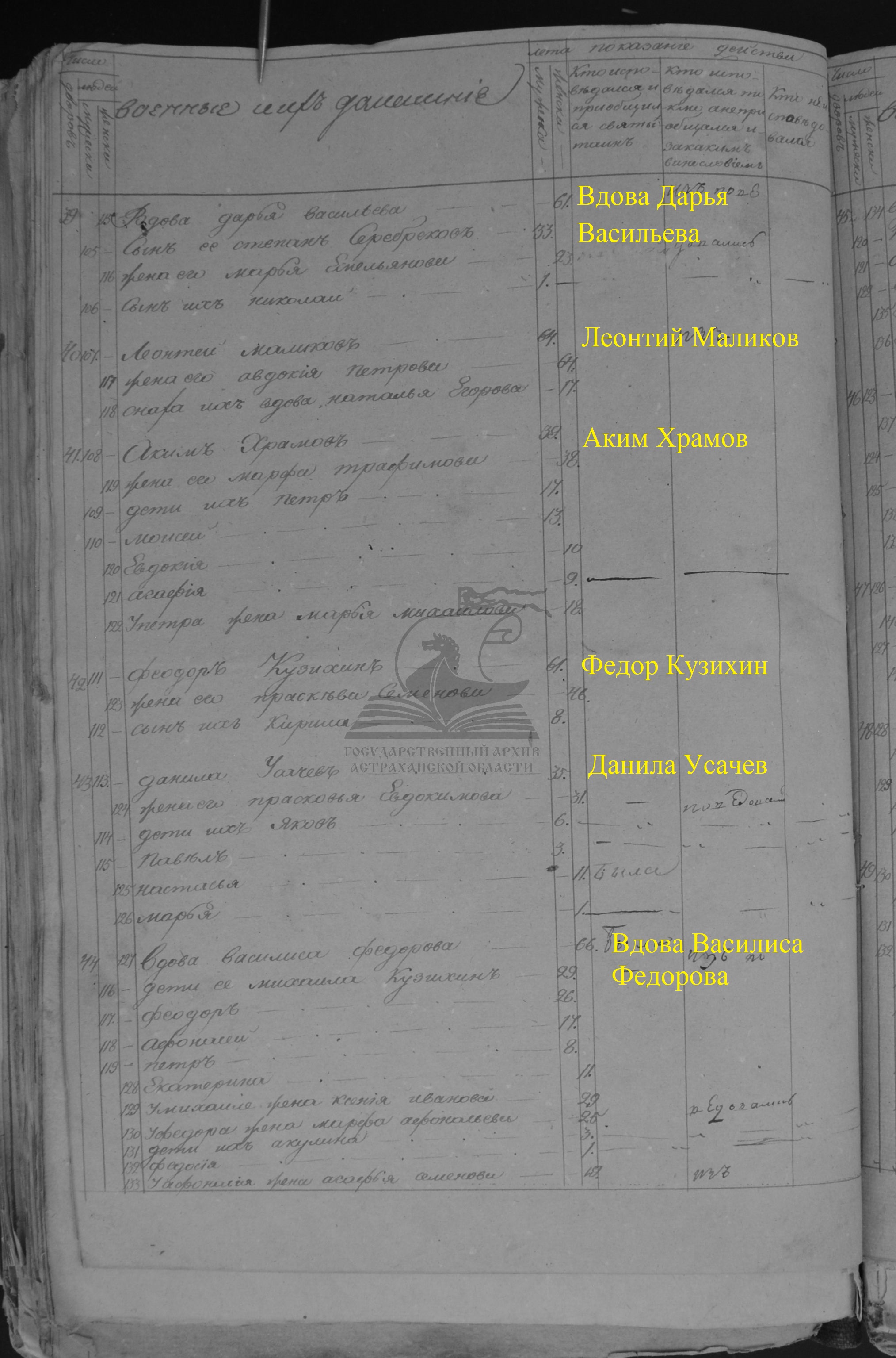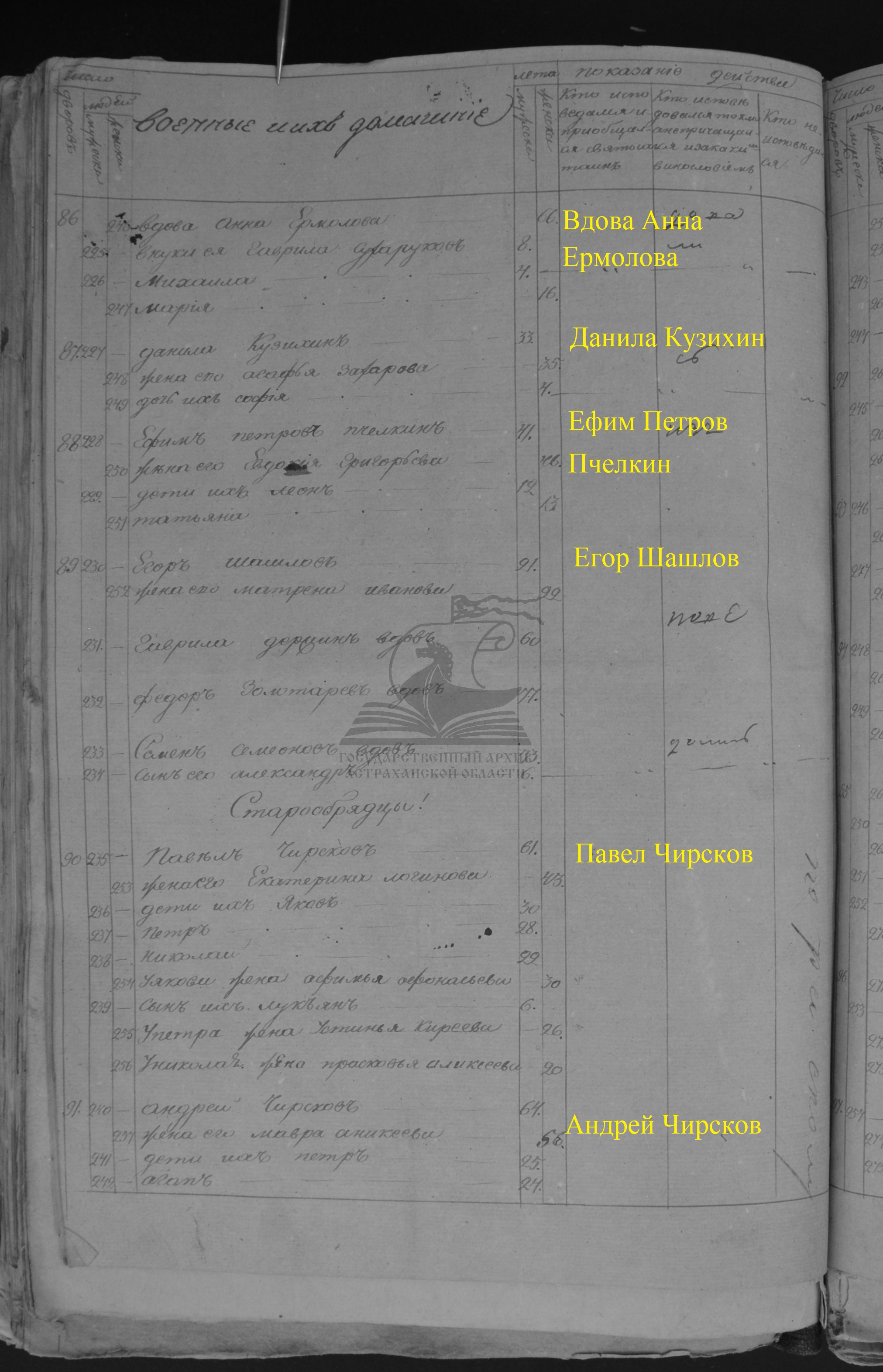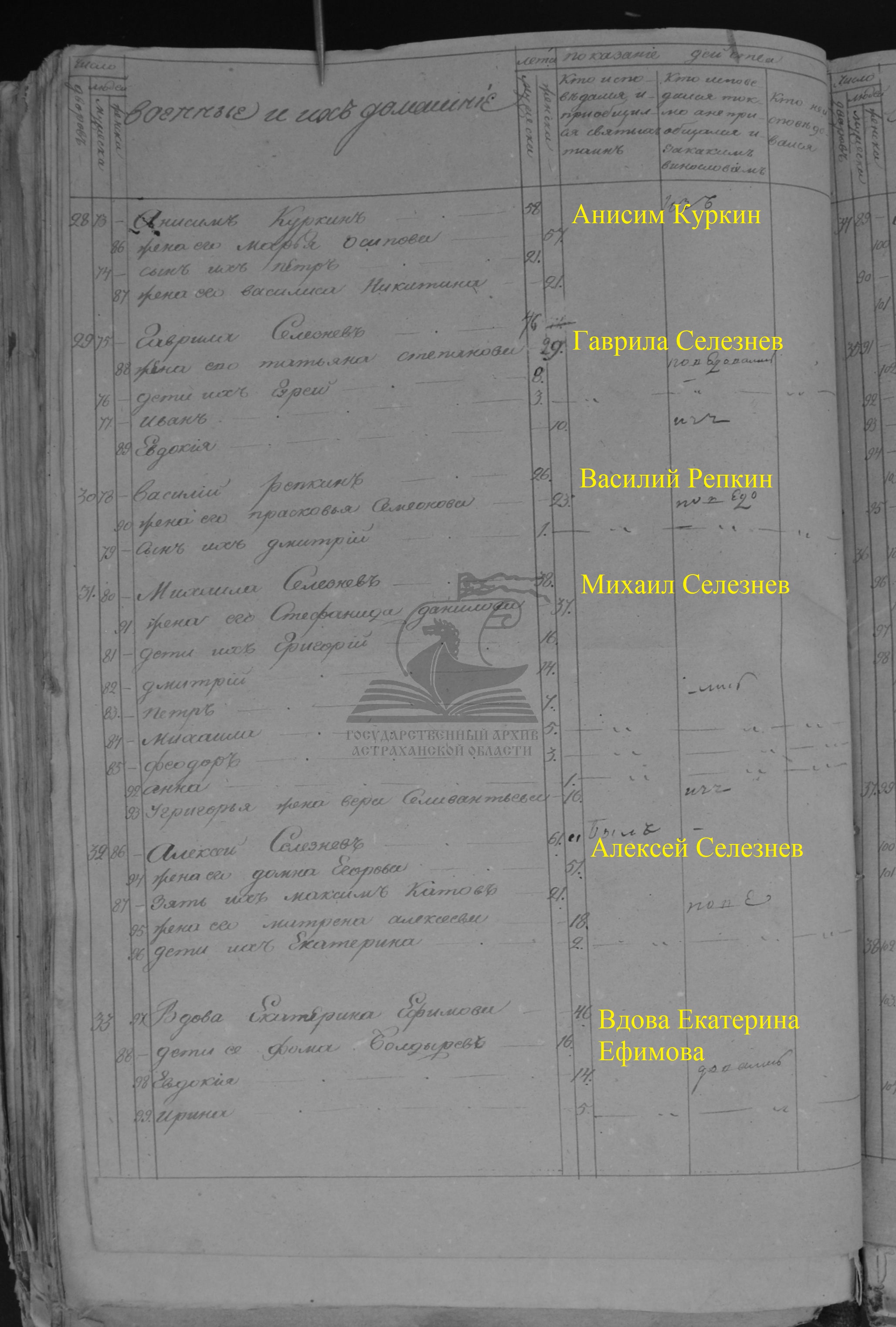 Список Волгских казаков из Исповедной описи за 1817 год.