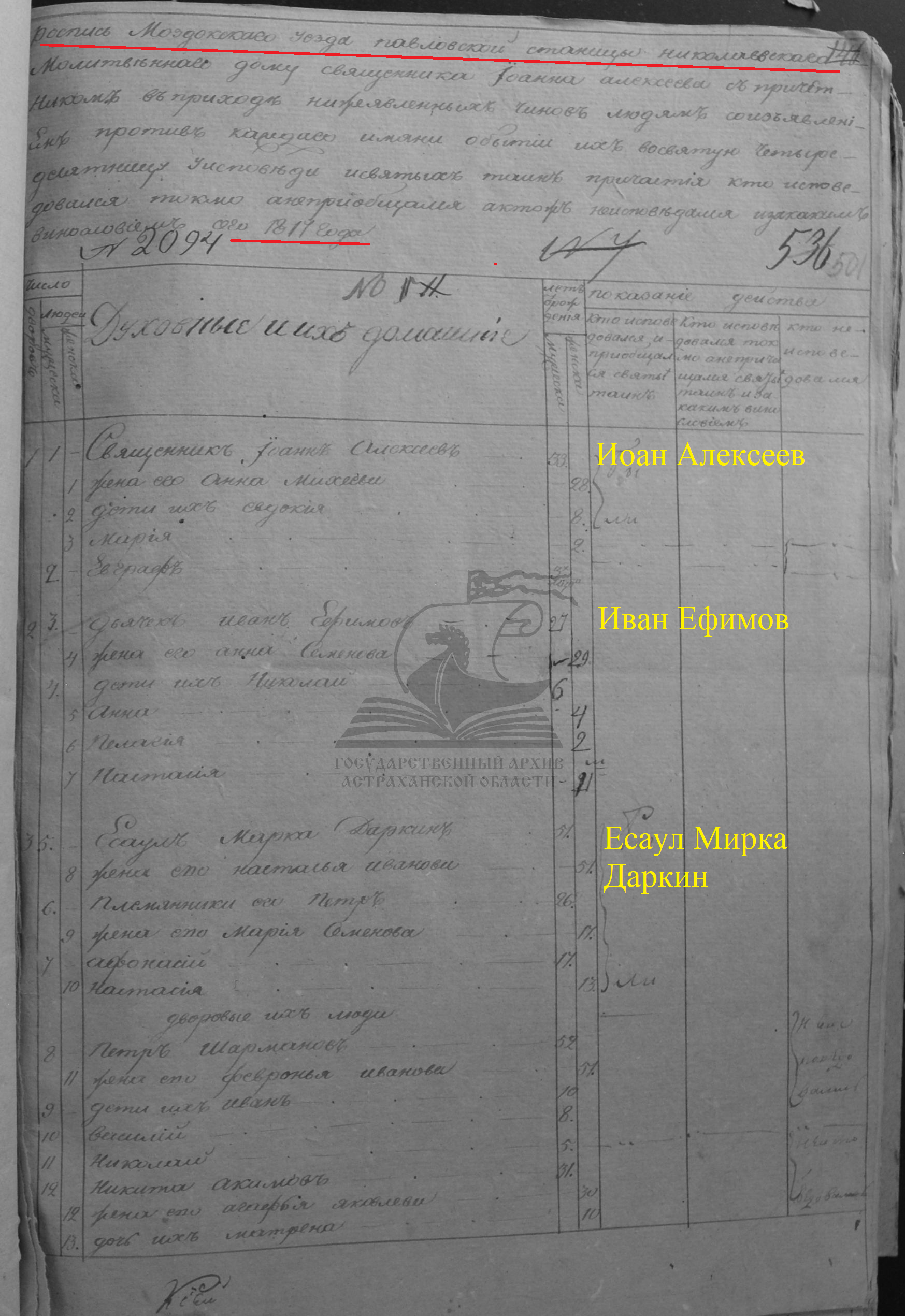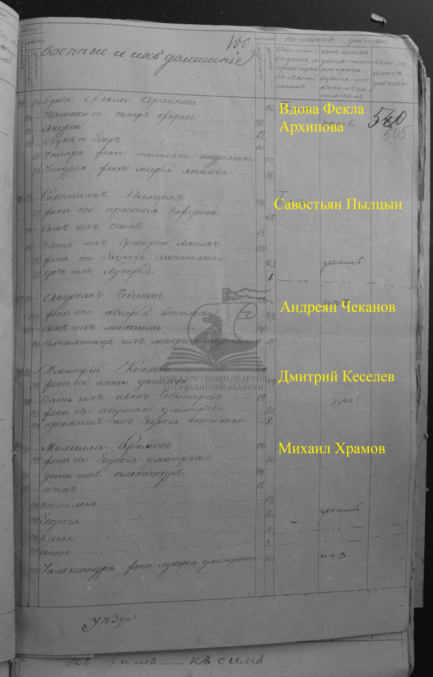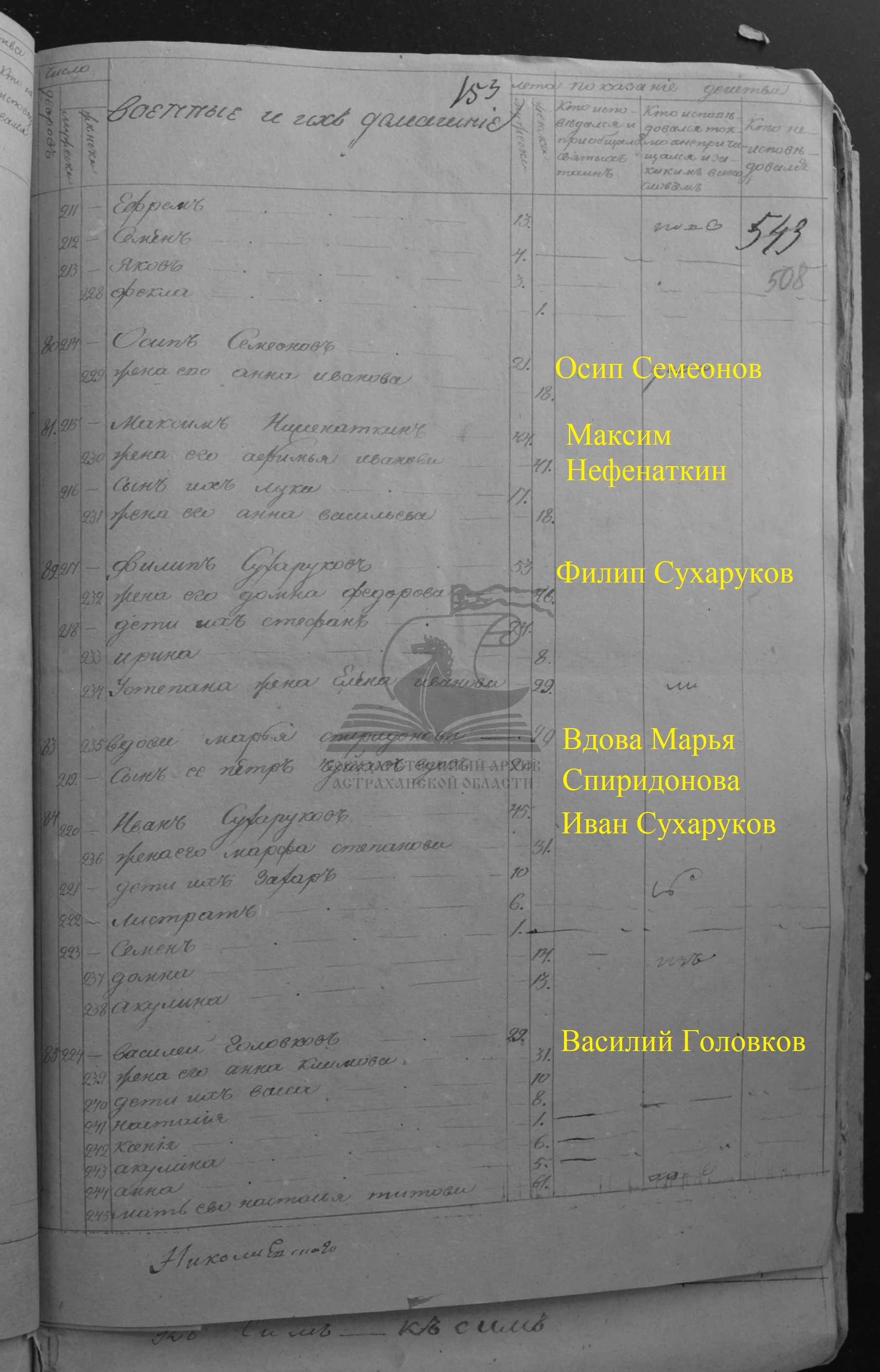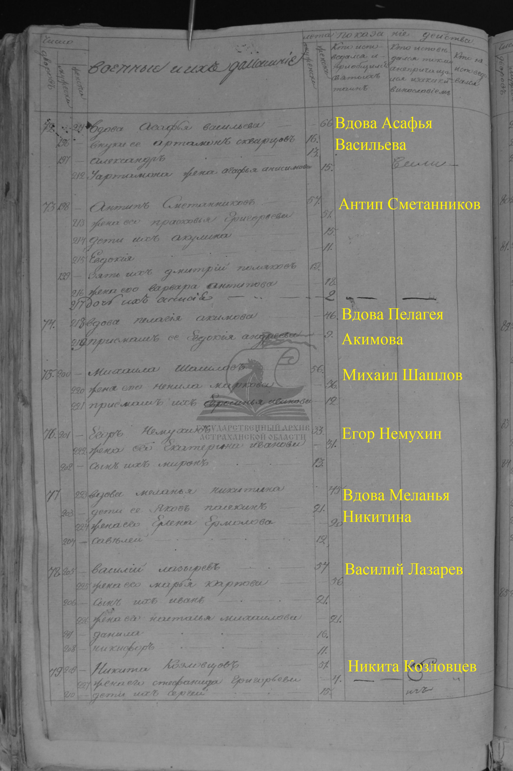 Список Волгских казаков из Исповедной описи за 1817 год.