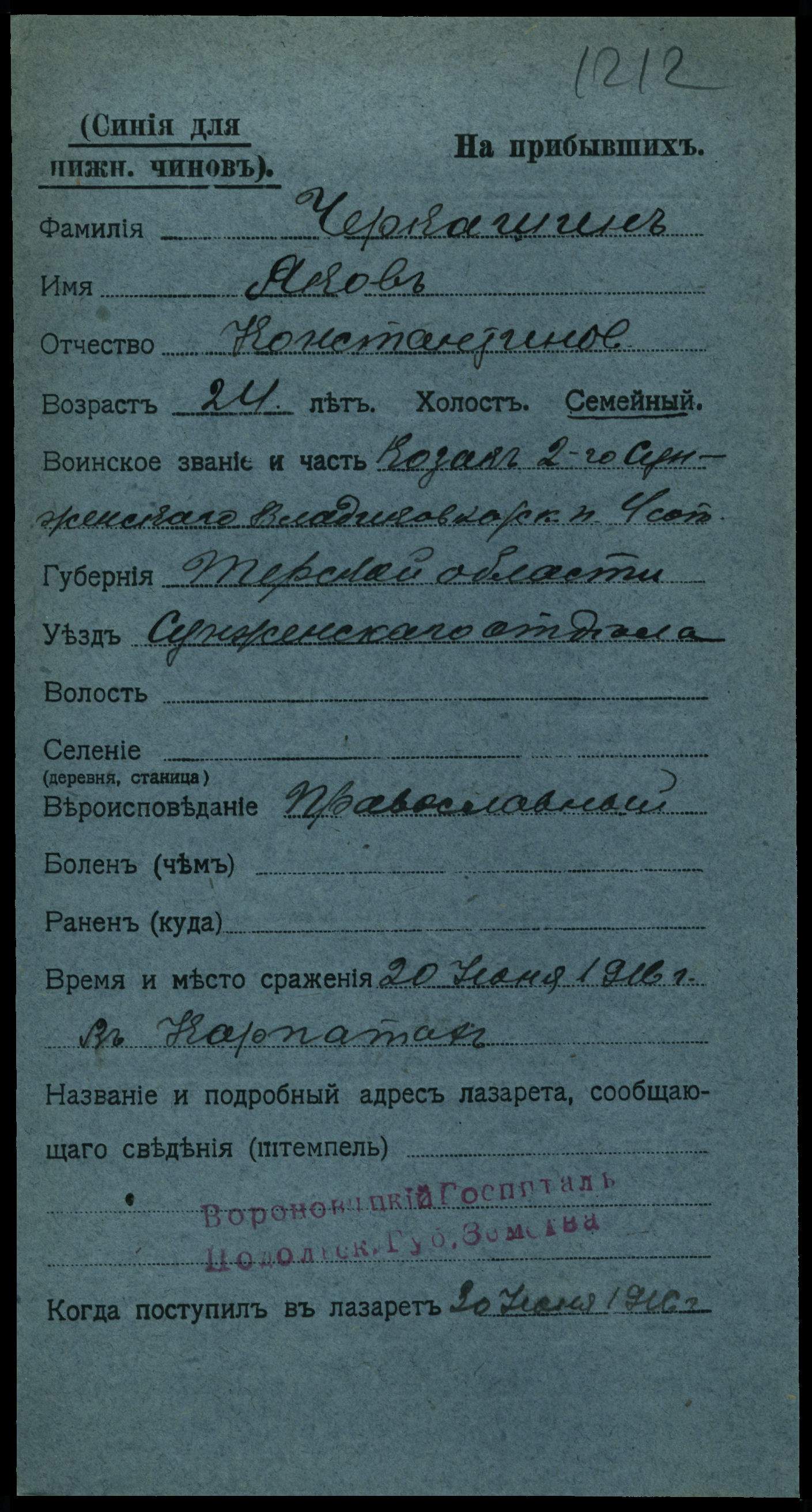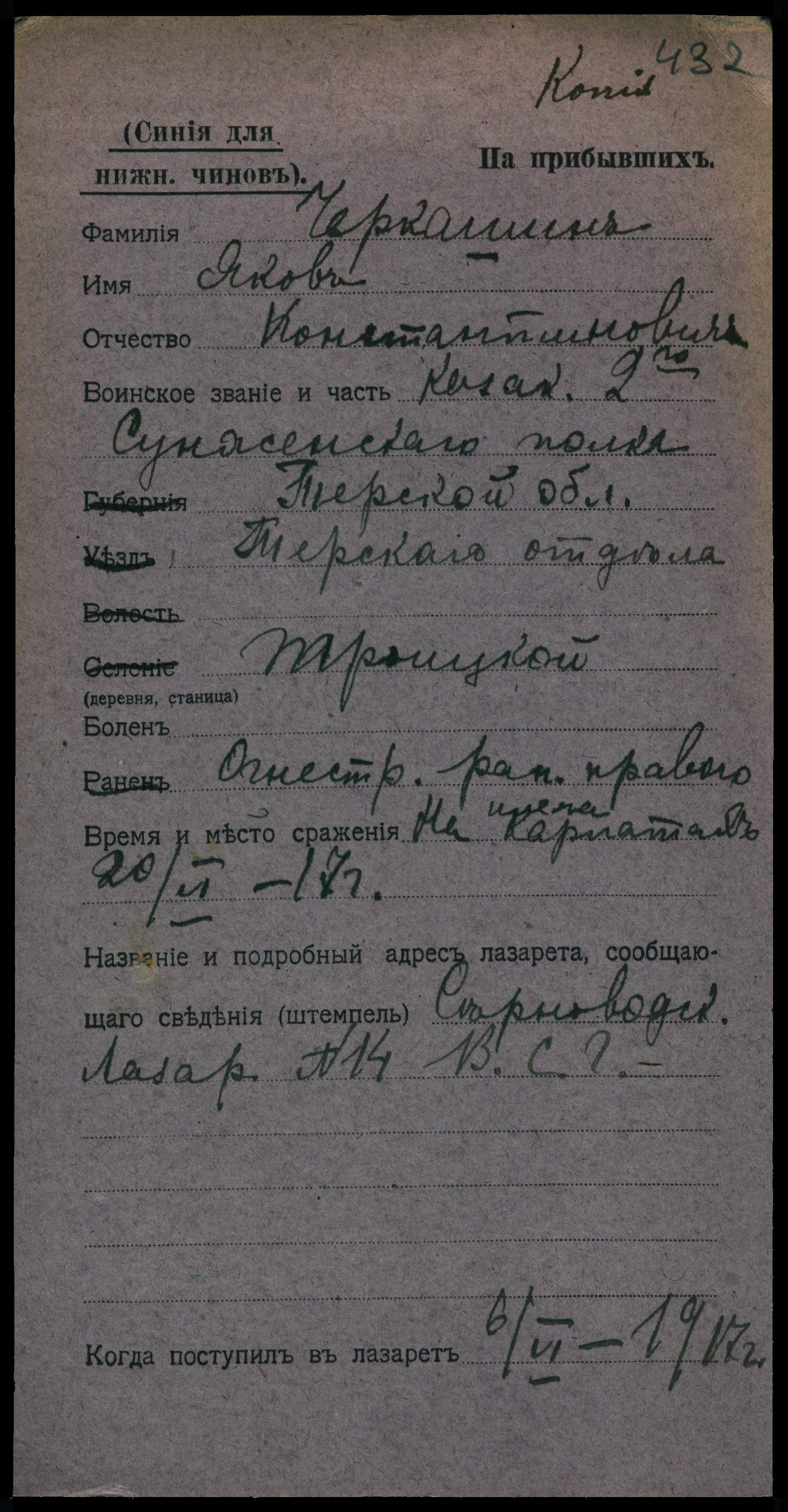 Второй момент, Черкашин Яков был зачислен во 2 С-В полк 4-й сотни с 1 июня 1915г. 2 Сунженско-Владикавказкий полк
