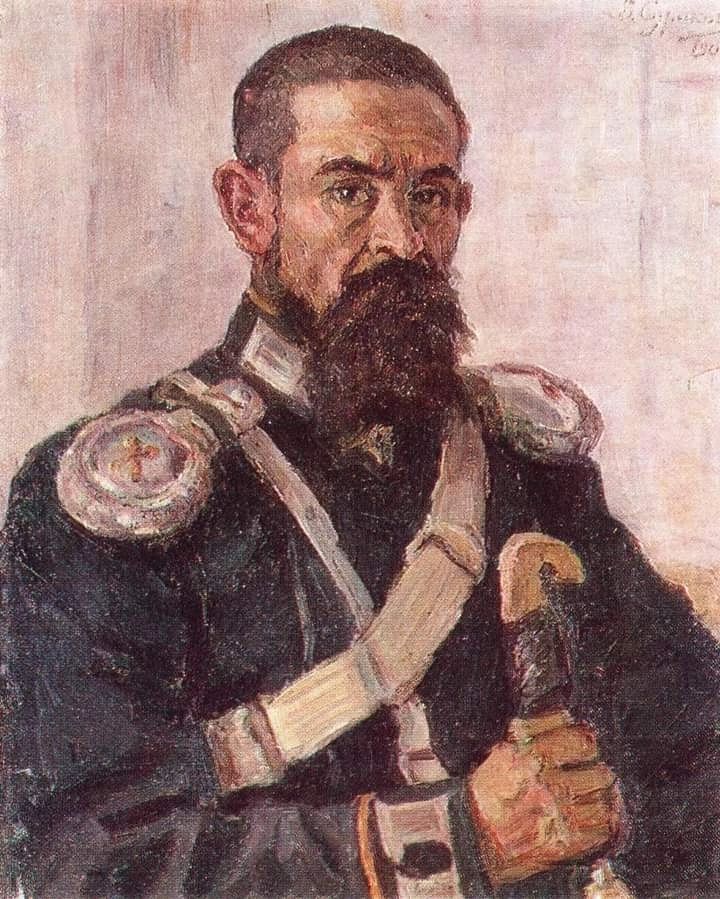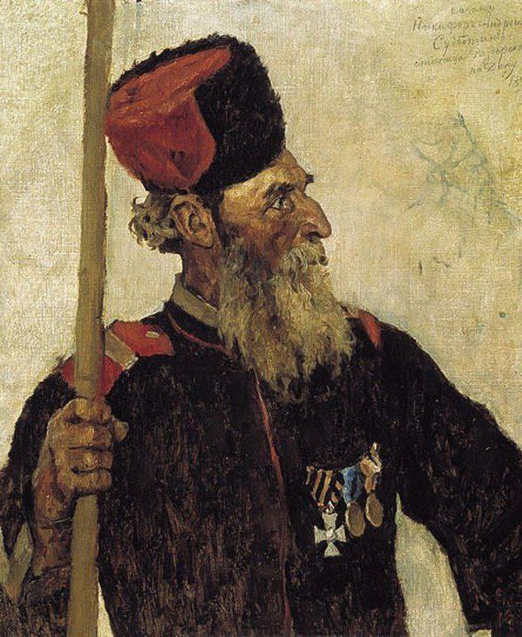 Портрет донского казака Никифора Андреевича Субботина из станицы Раздорской Области Войска Донского, одного из натурщиков для картины "Покорение Сибири Ермаком" В. И. Сурикова, 1893г.