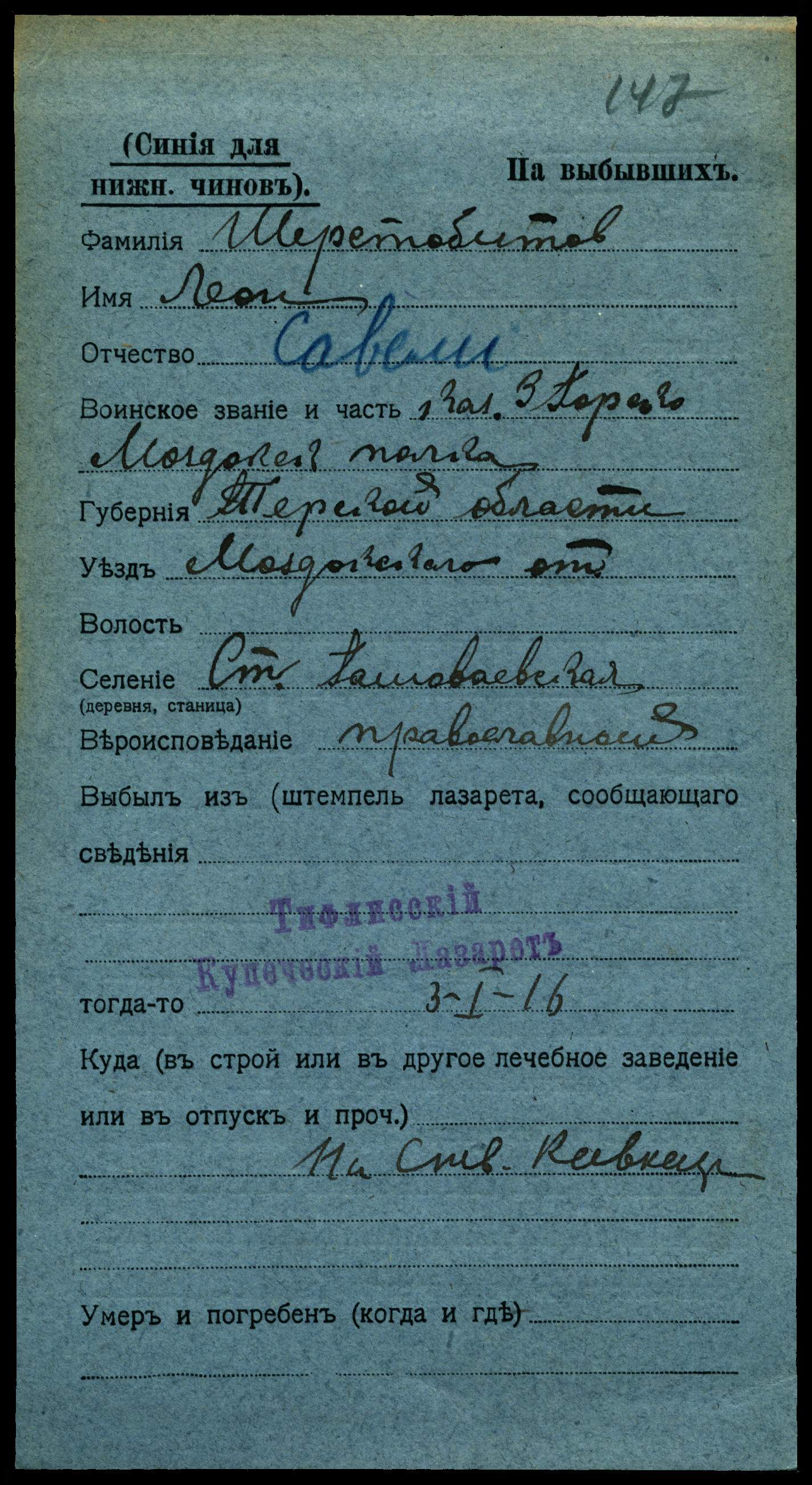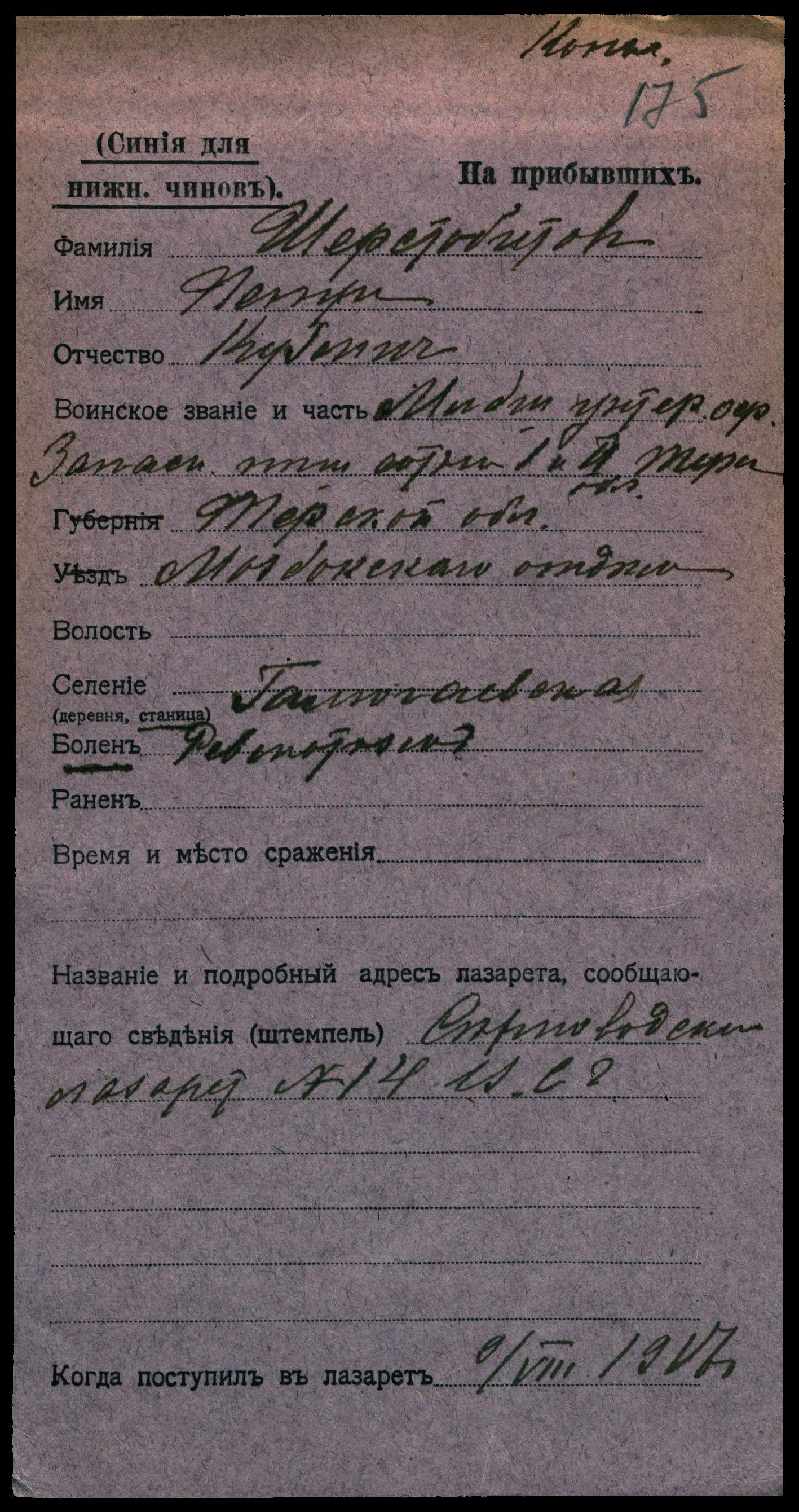 Отец: Шерстобитов Петр Пахомович ст. Галюгаевская