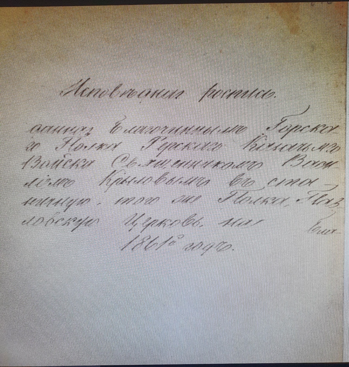 Данная благочинным Горского Полка Терского Казачьего Войска Священником Василием Крыловым в станичную,того же Полка Павловскую Церковь на 1861 год.