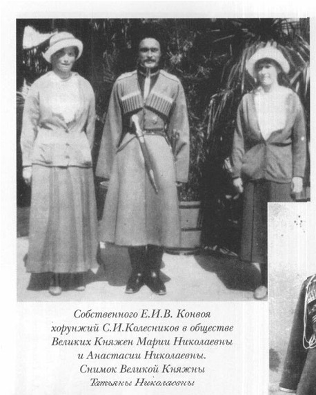 Колесников Сергей Иванович - род. 28 марта 1892 г., казак ст. Ищерскюй ТКВ, ок. Орловский Бахтина кадетский корпус, сотню Николаевского кавалерийского училища (1912), вышел хорунжим в 1-й Кизляро-Гребенской генерала Ермолова полк ТКВ. В Великой войне сотник того же полка, прикомандирован к Собственному Е.И.В. Конвою (3.11.1915), переведен хорунжим Л.Гв. в 3-ю Терскую сотню (10.04.1916), в Терском Гвардейском Дивизионе (05.1917). В Добровольческой армии и ВСЮР, адъютант Терского Гвардейского атаманского дивизиона (1.08.1919), подъесаул (3.01.1920), полковник Дивизиона Собственного Е.И.В. Конвоя (1960), умер в Доле (Франция) 26 апреля 1977 г