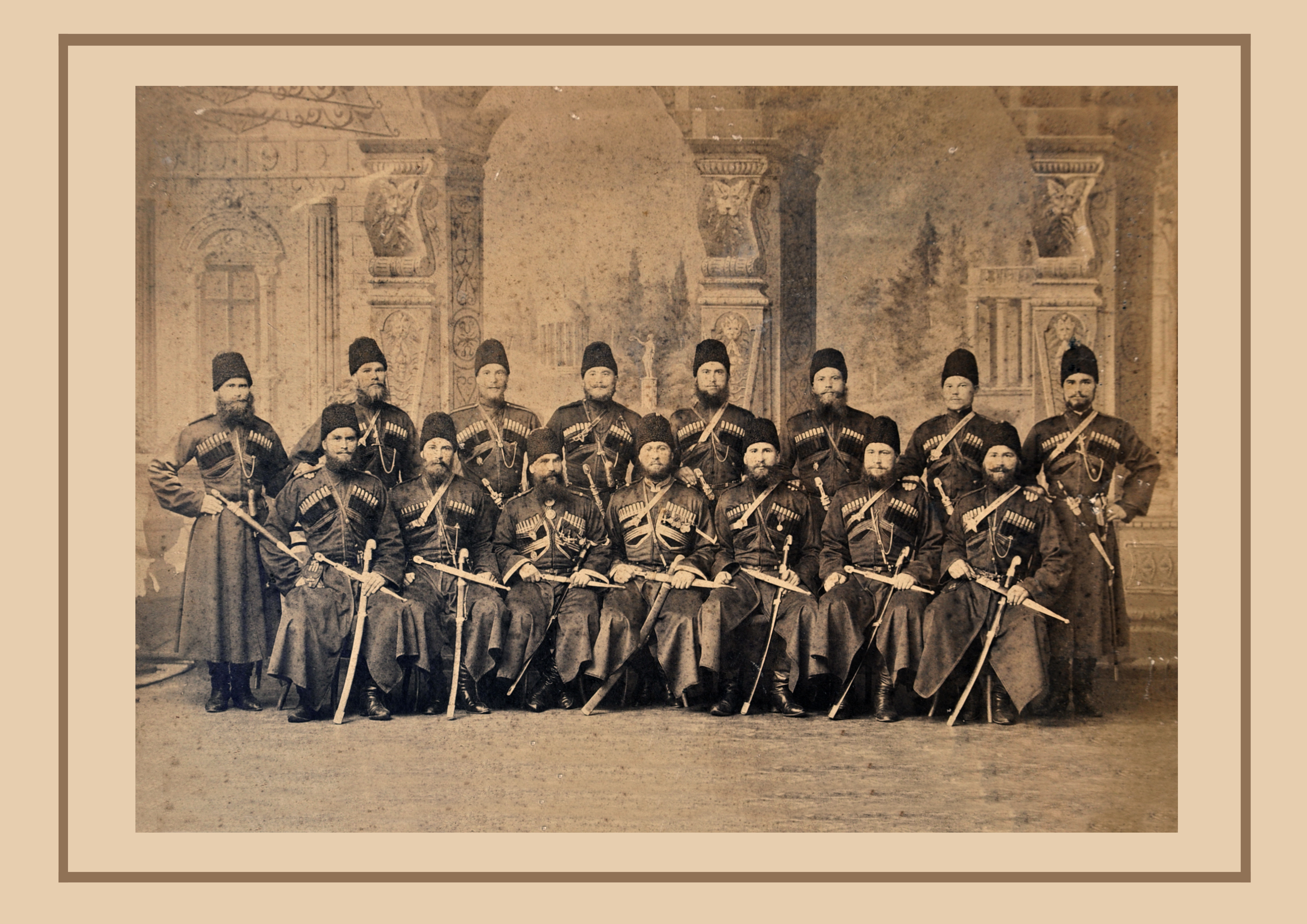 Если это так, то фото сделано в 1890-1892 гг. с учетом того, что 1) фото из личного архива потомков Евтеева Максима, стан. Калиновская, служившего в конвое в 1890-1892 гг. 2) Гавриил Ильин, стан. Мекенская, служившего в царском конвое в 1889-1892 гг. Тогда версия Ermak о конце 1880-х годов несостоятельна.