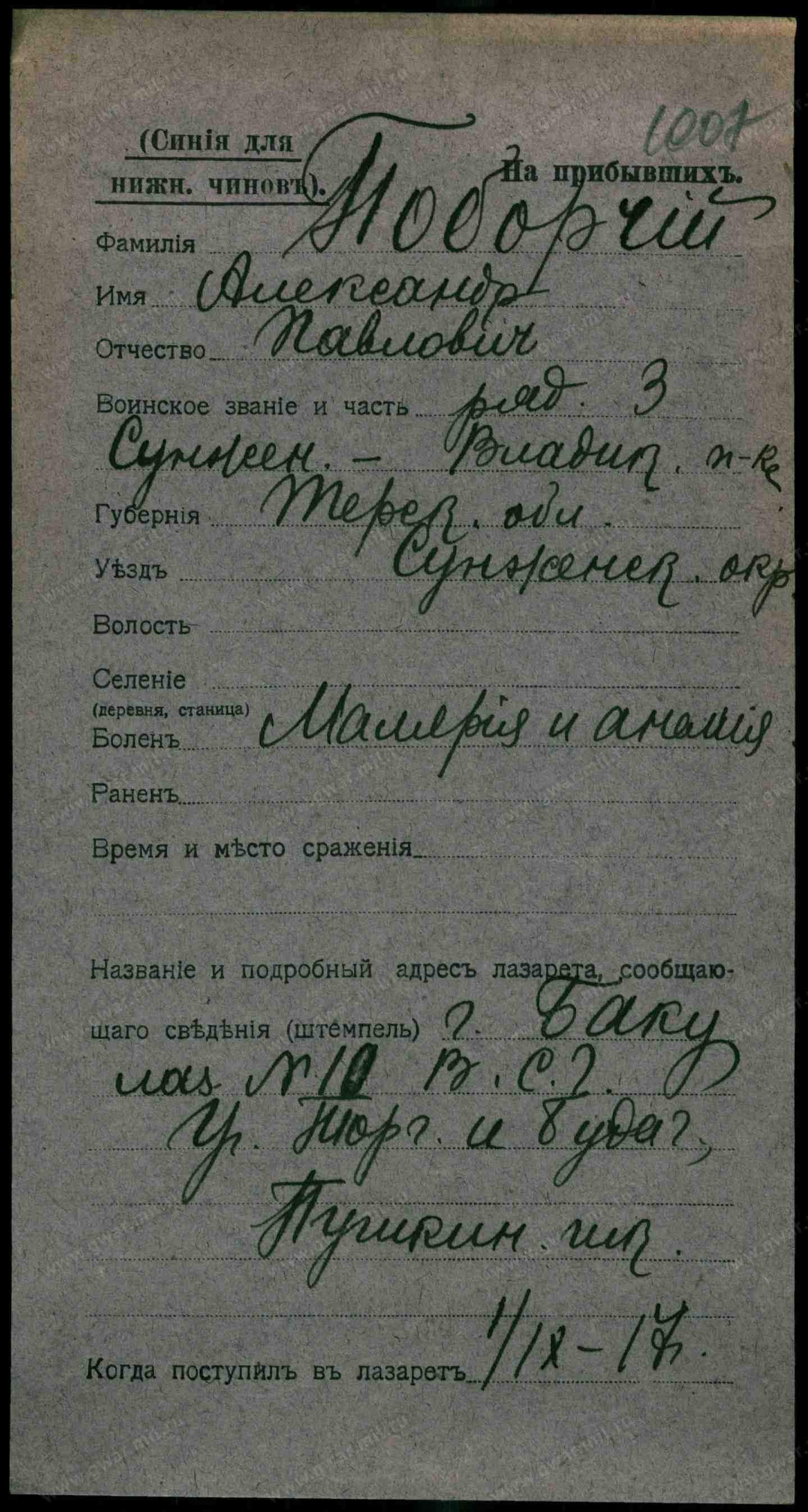 Красноармеец, __.__.1904 Северо-Осетинская АССР, ст. Зенейская. Сводная картотека