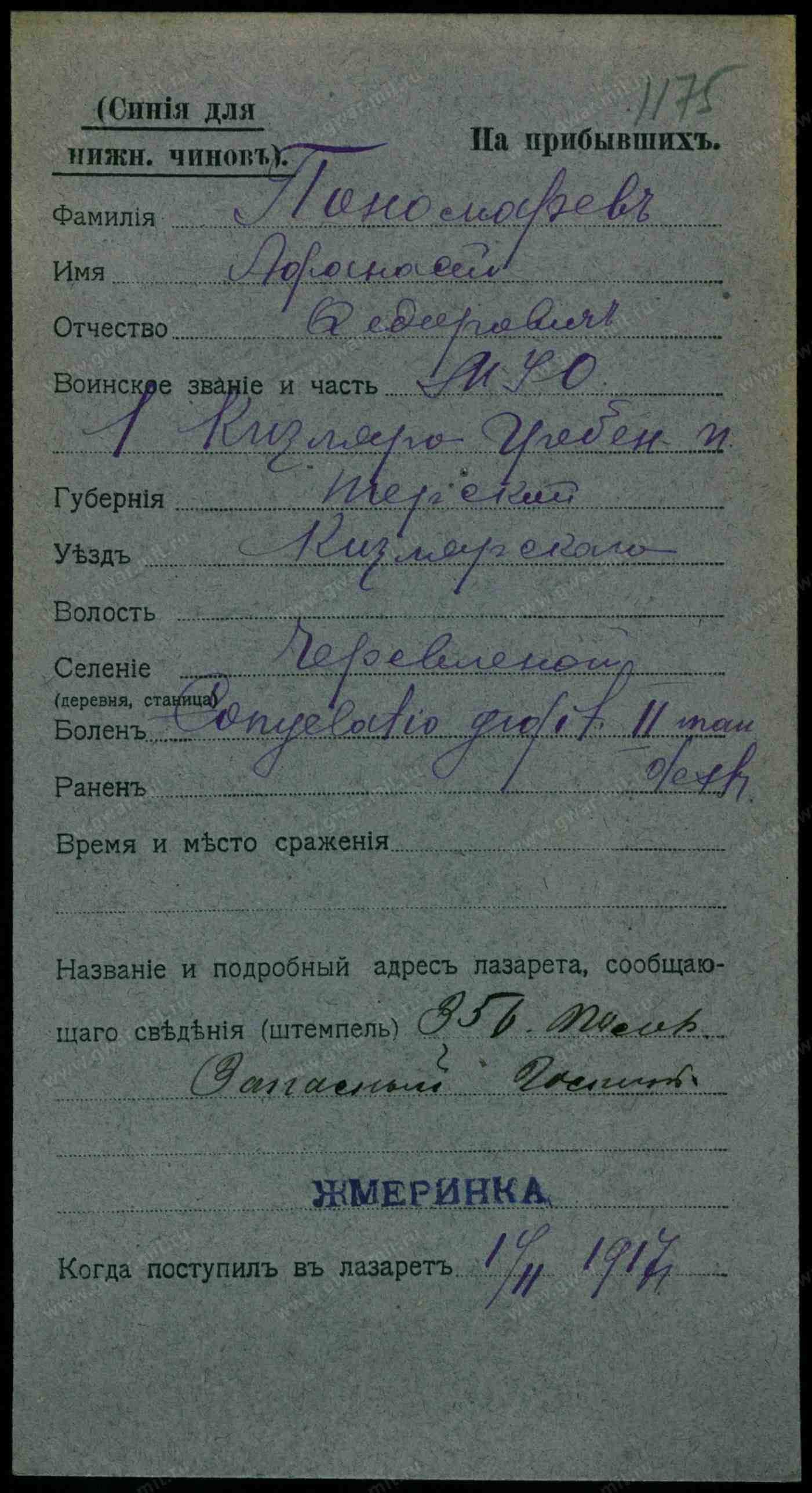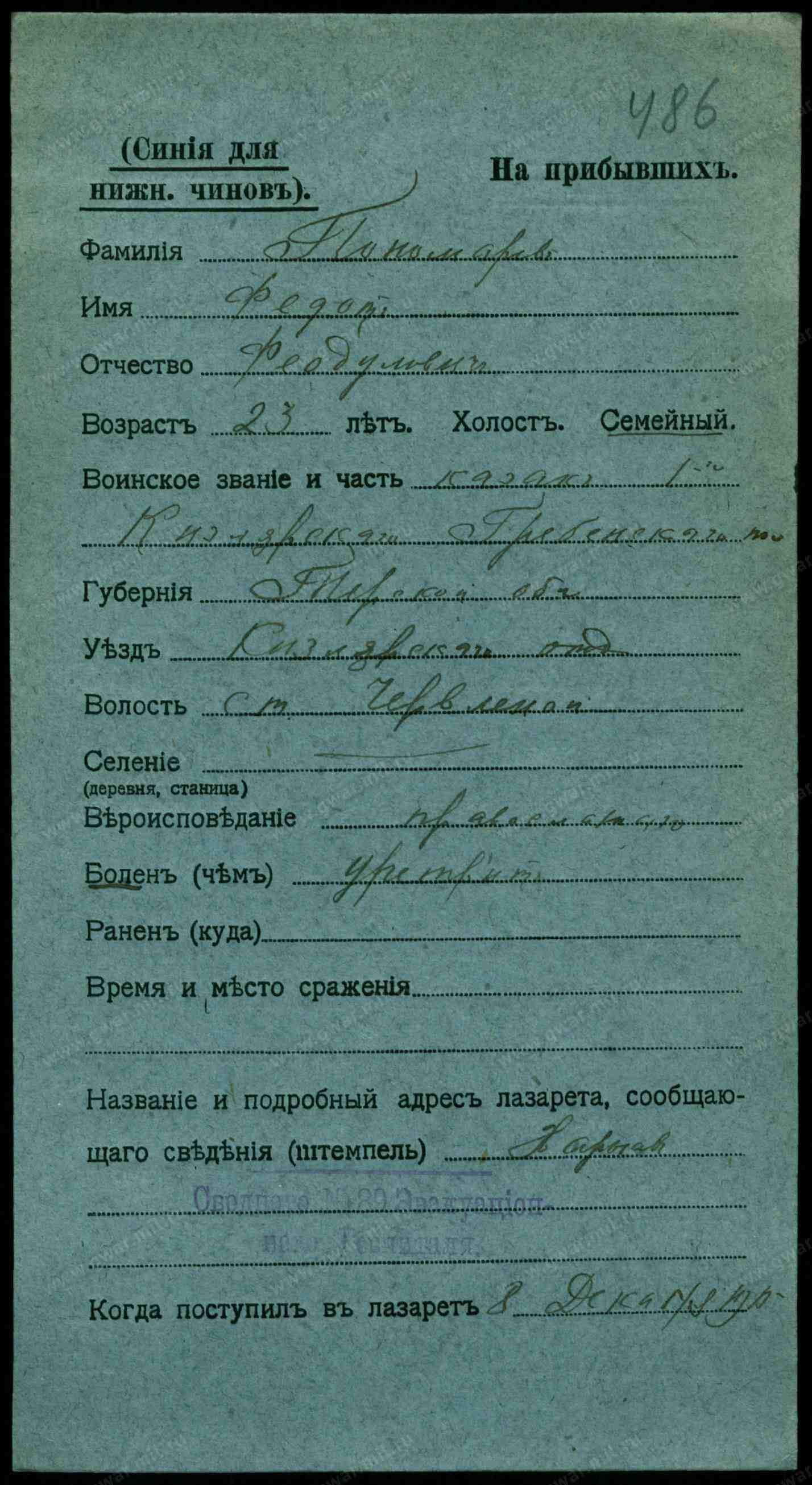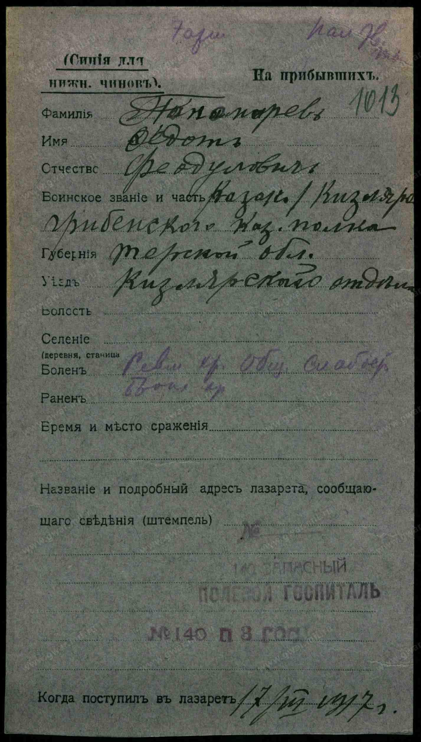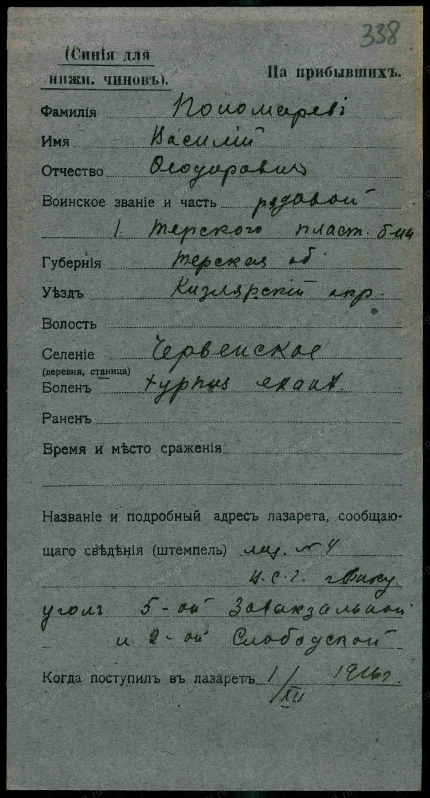Сержант, __.__.1916 Грозненская обл., Шелковский р-н, станица Червленная. Сводная картотека