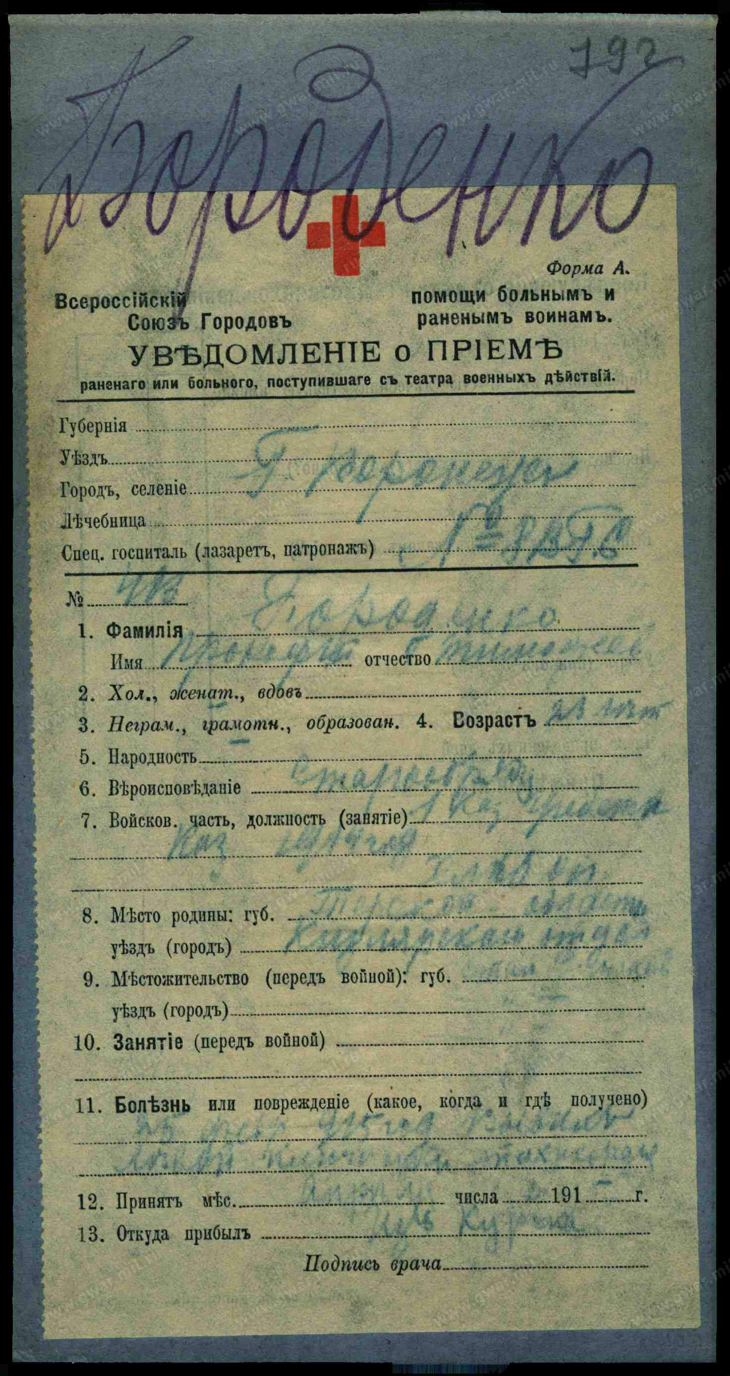 Дата поступления: 25.06.1916