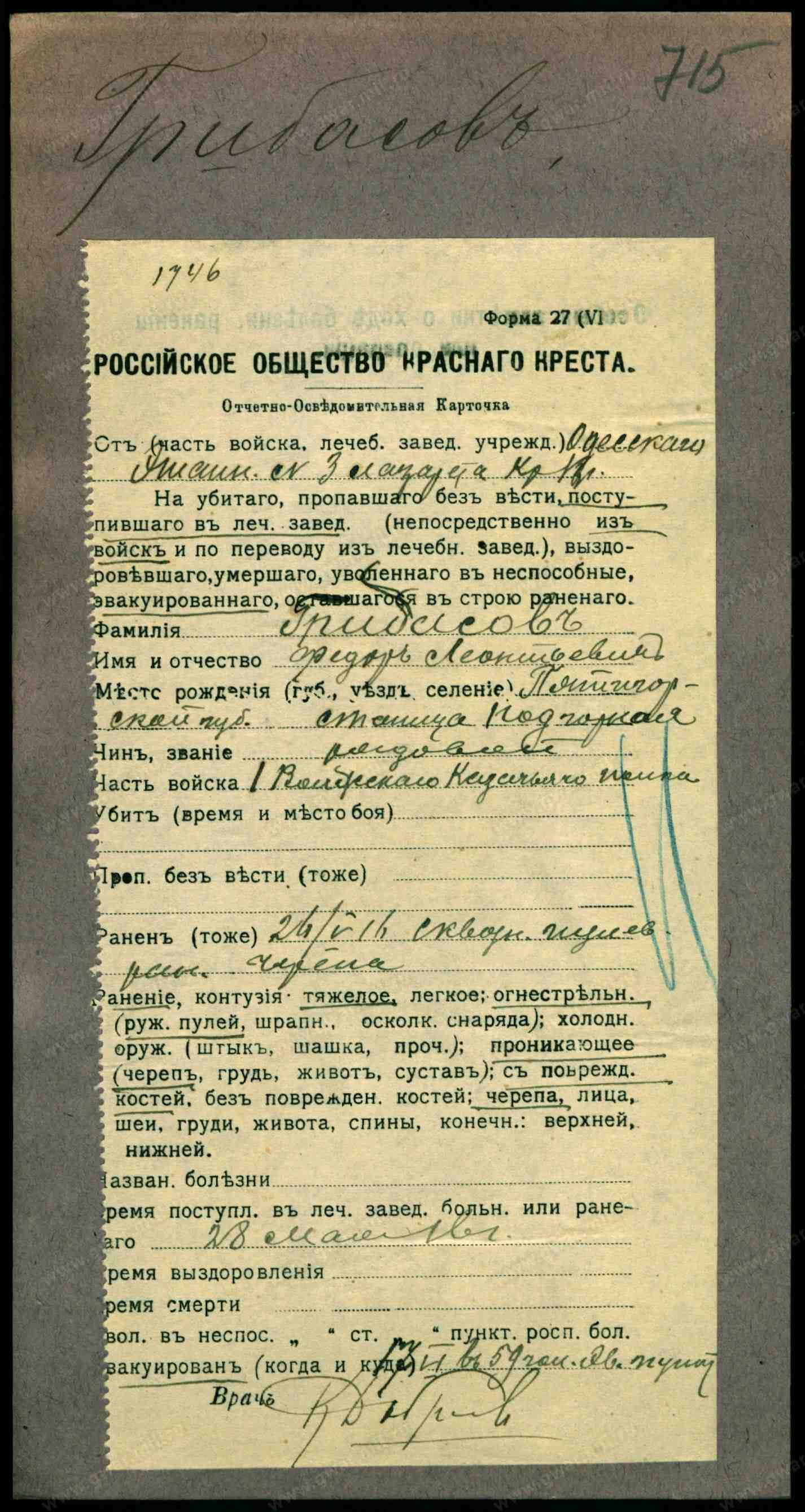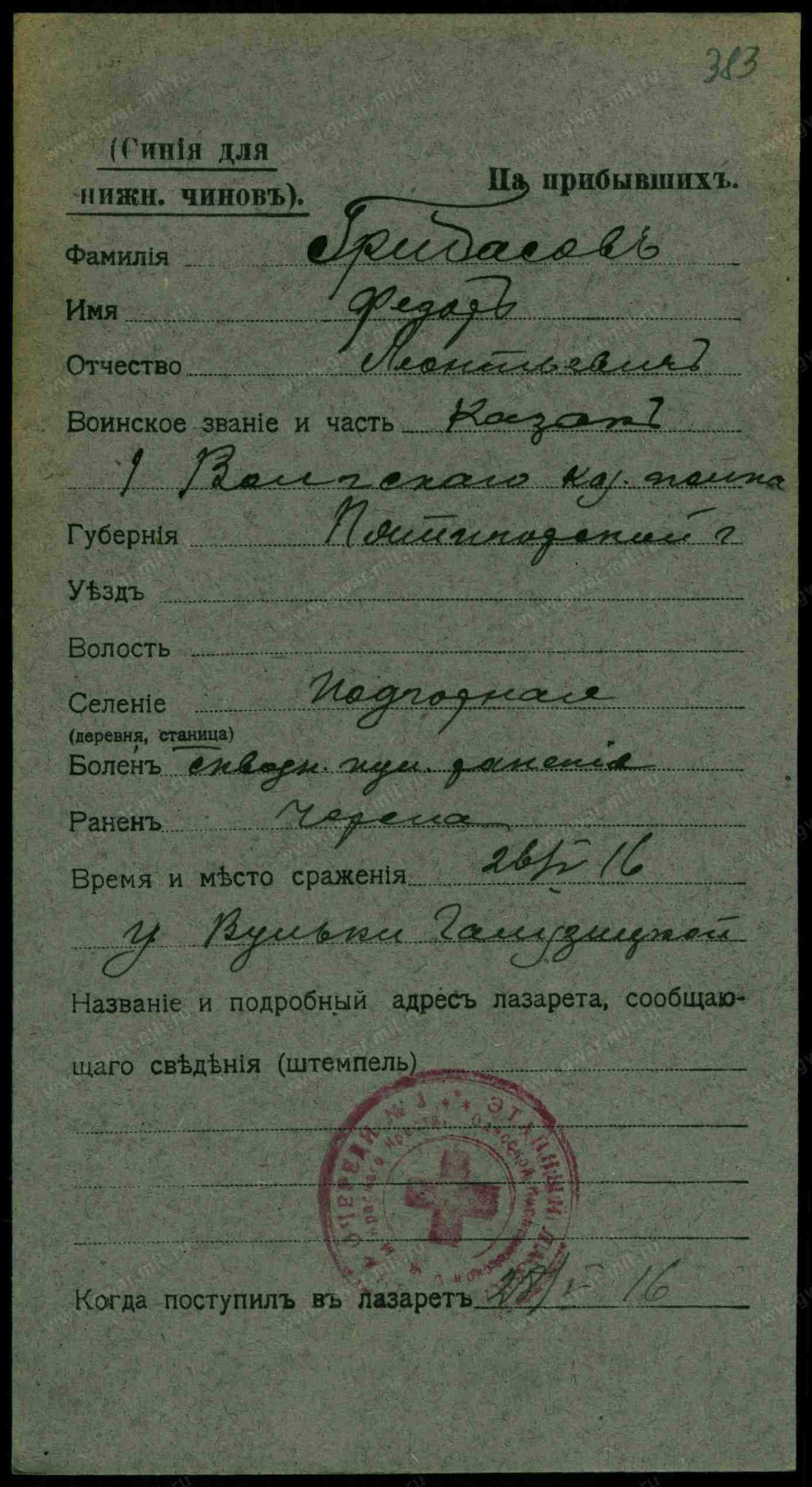 каз. Гридасов Игнат, прав., холл., ран. 2 окт. 1914г.