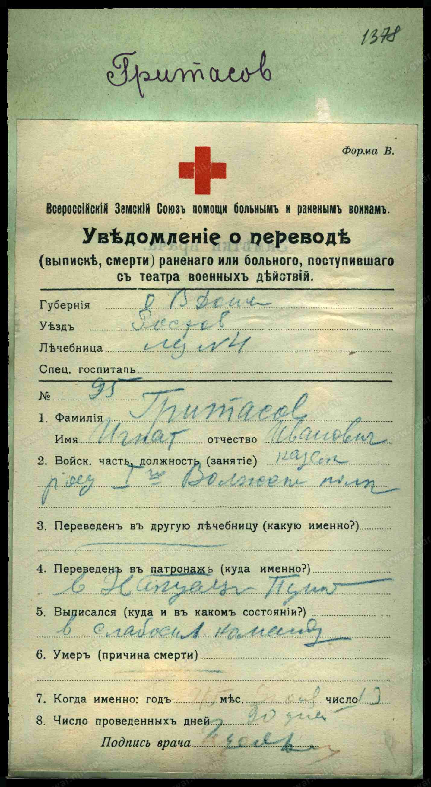 Гридасов Спиридон Леонтьевич Ставропольская губ. Подгорная ст. Ущерб им-ва (Гражд. война) 1918