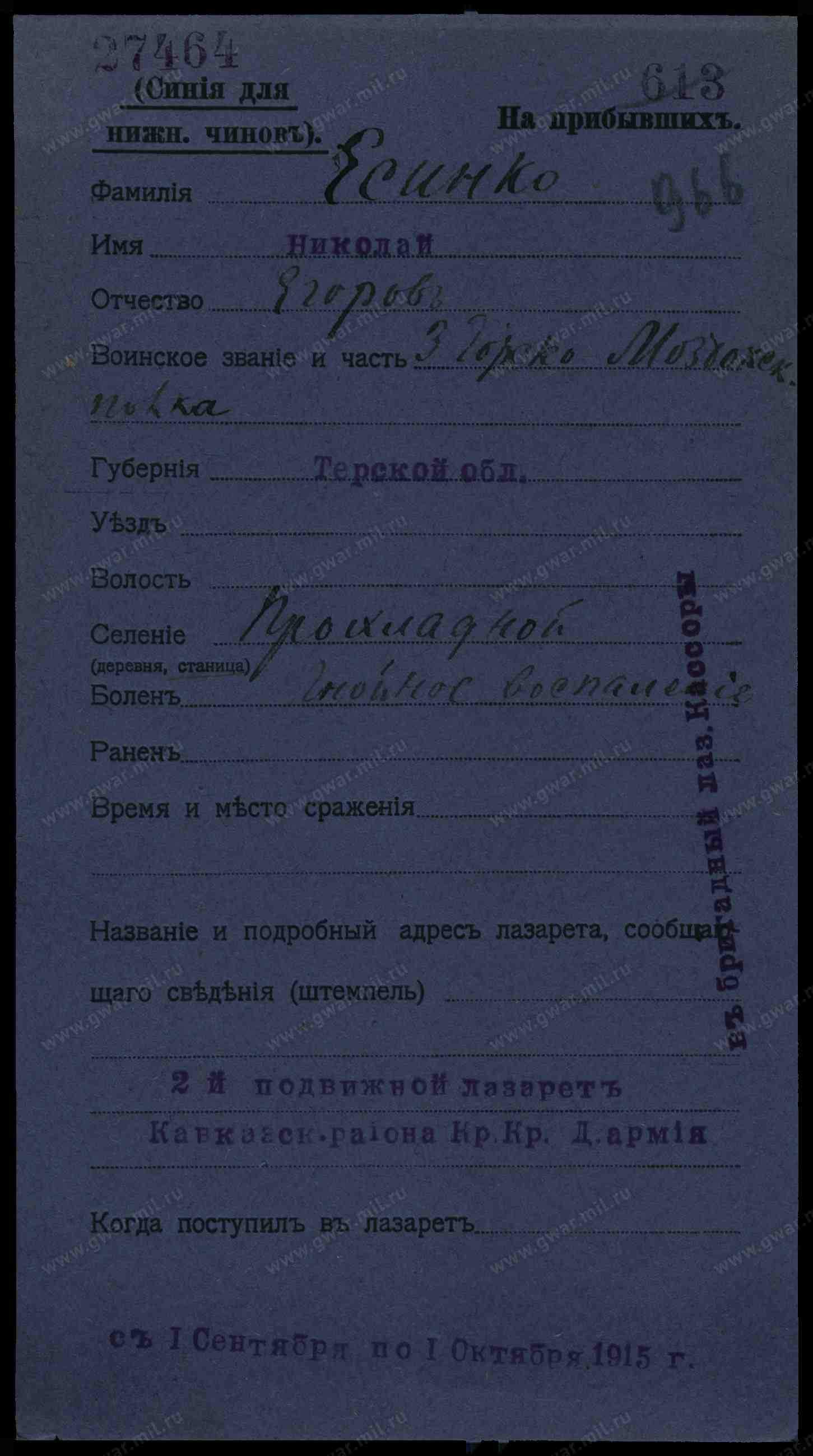 Приказный Евстафий Есипко – 4 ст. № 192467 (Ст. Прохладная).