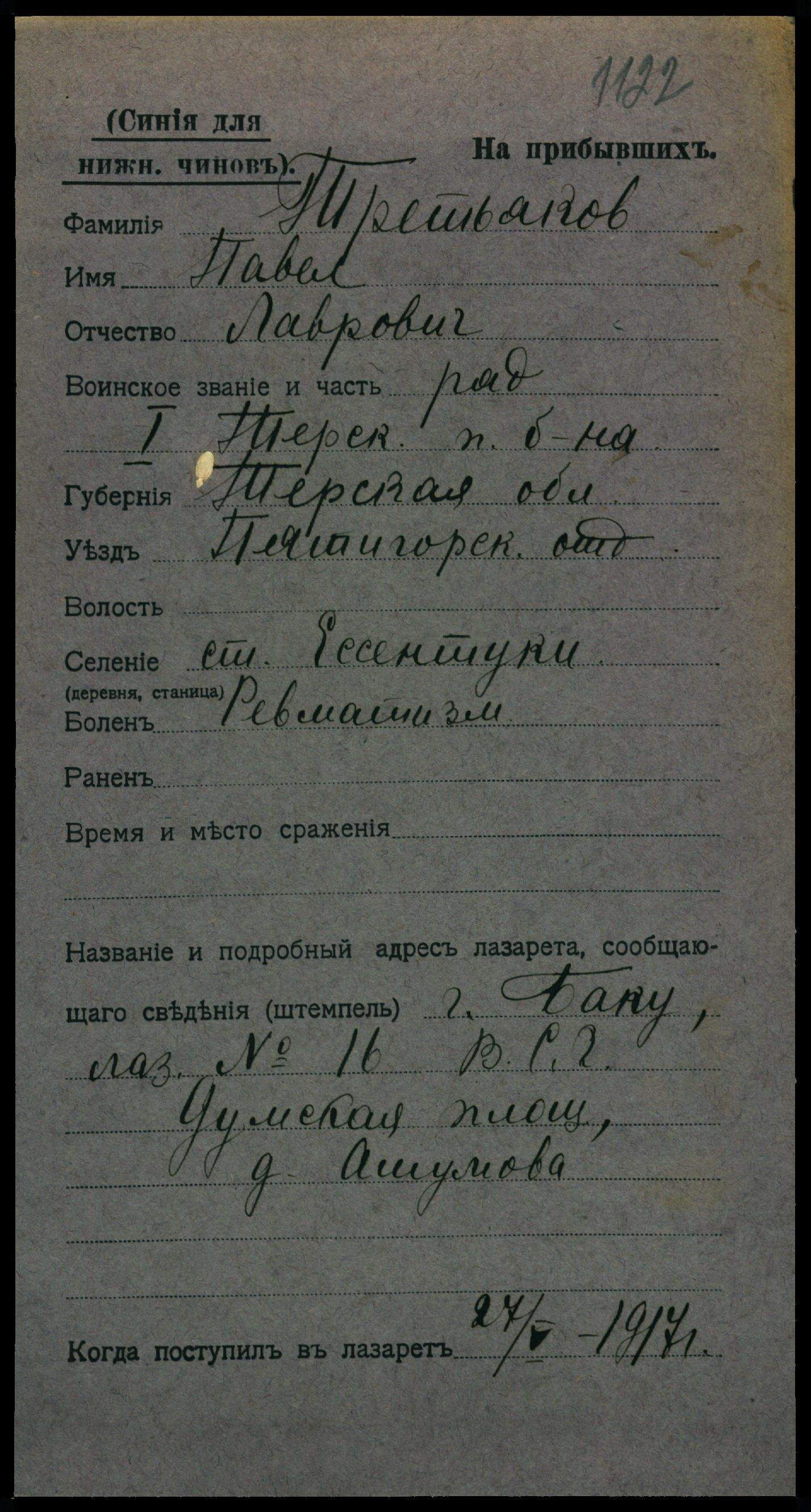 Рядовой __.__.1921 Орджоникидзевский край, г. Ессентуки, Мичурина, 22 , Место службы: 15 кон. арт. д н. Донесение о потерях